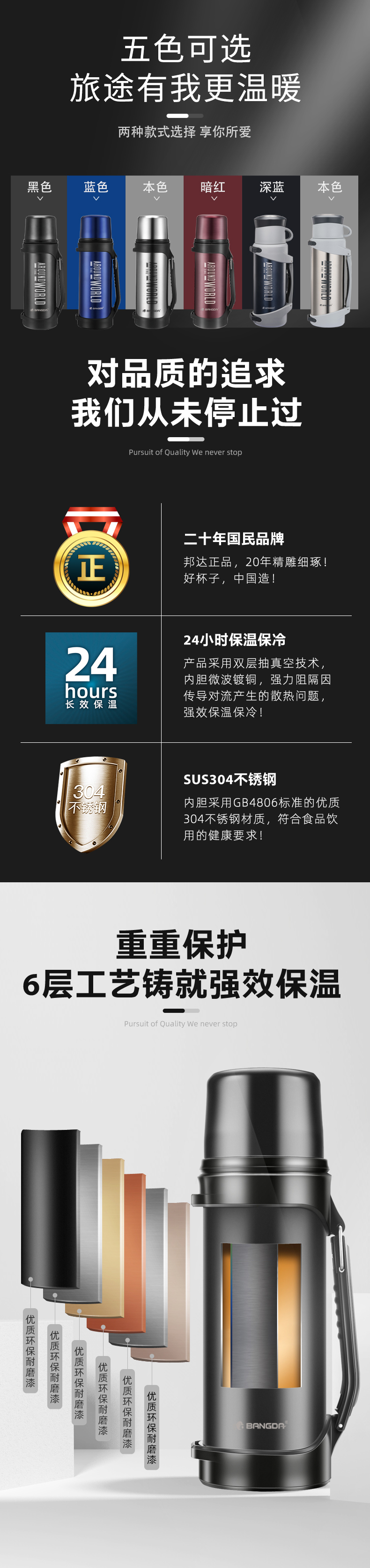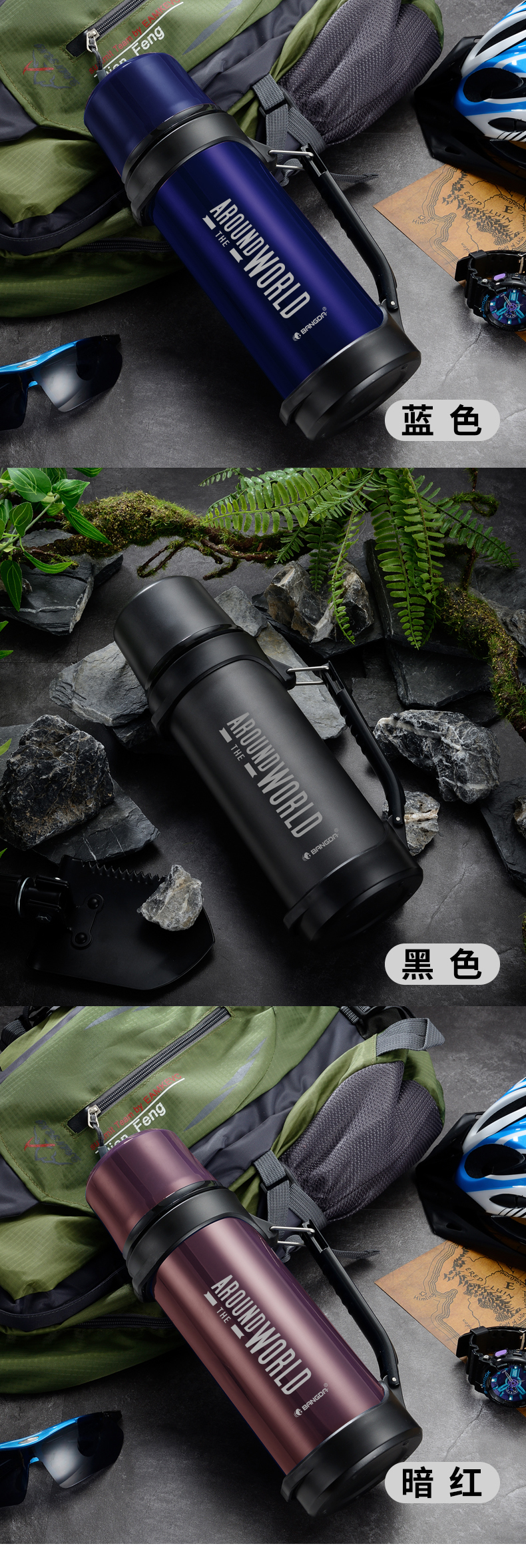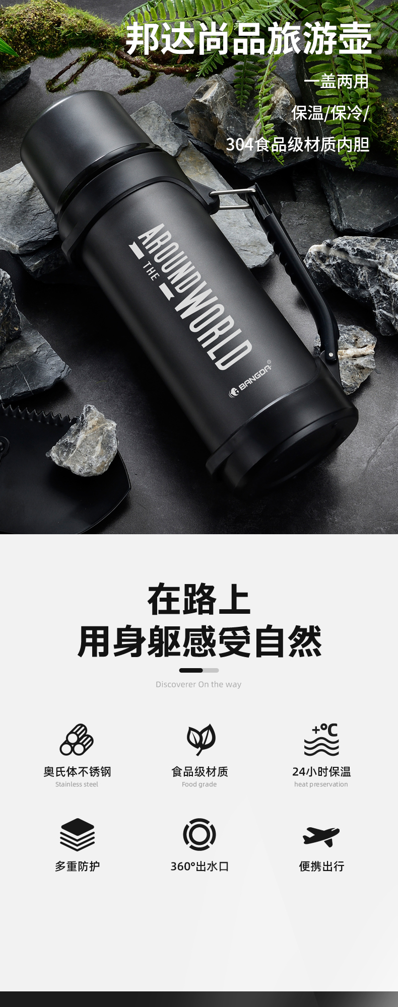 【推荐】邦达品牌周年庆,限时抢购,304不锈钢内胆,一键出水内盖,强力尼龙背绳,食品级pp饮水外盖,365天不保温免费换新