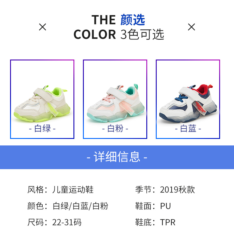 童鞋2019新款秋季儿童休闲运动鞋时尚软底潮中小童透气网鞋机能鞋