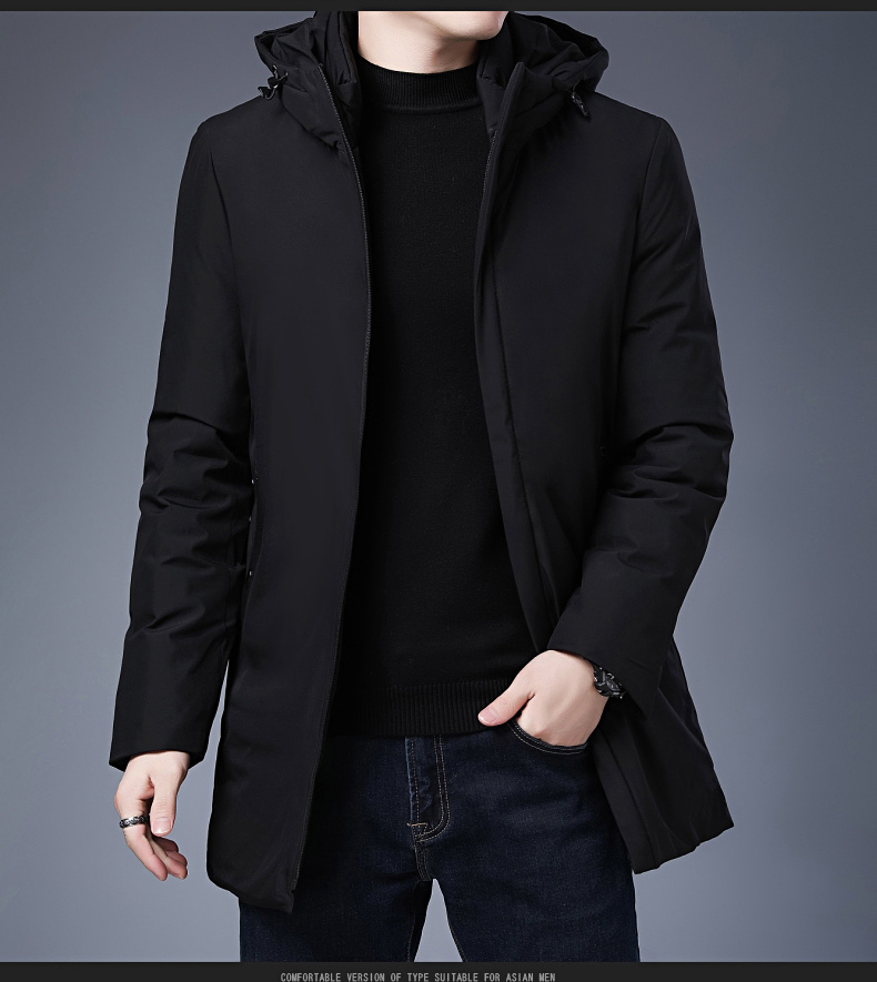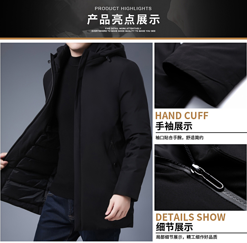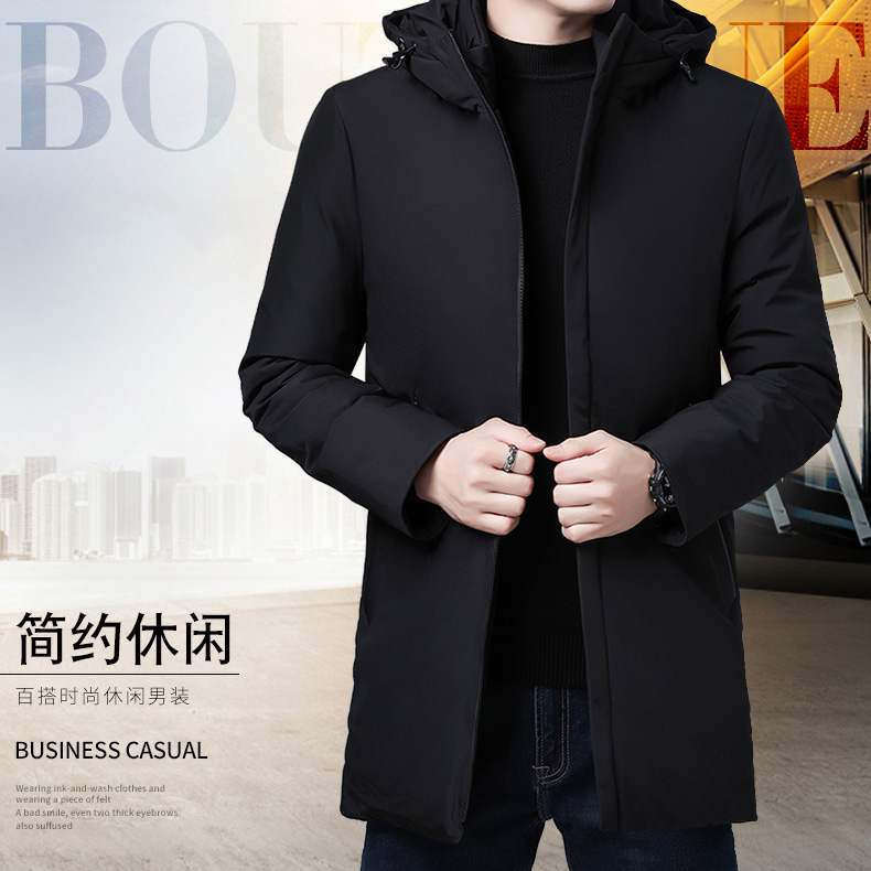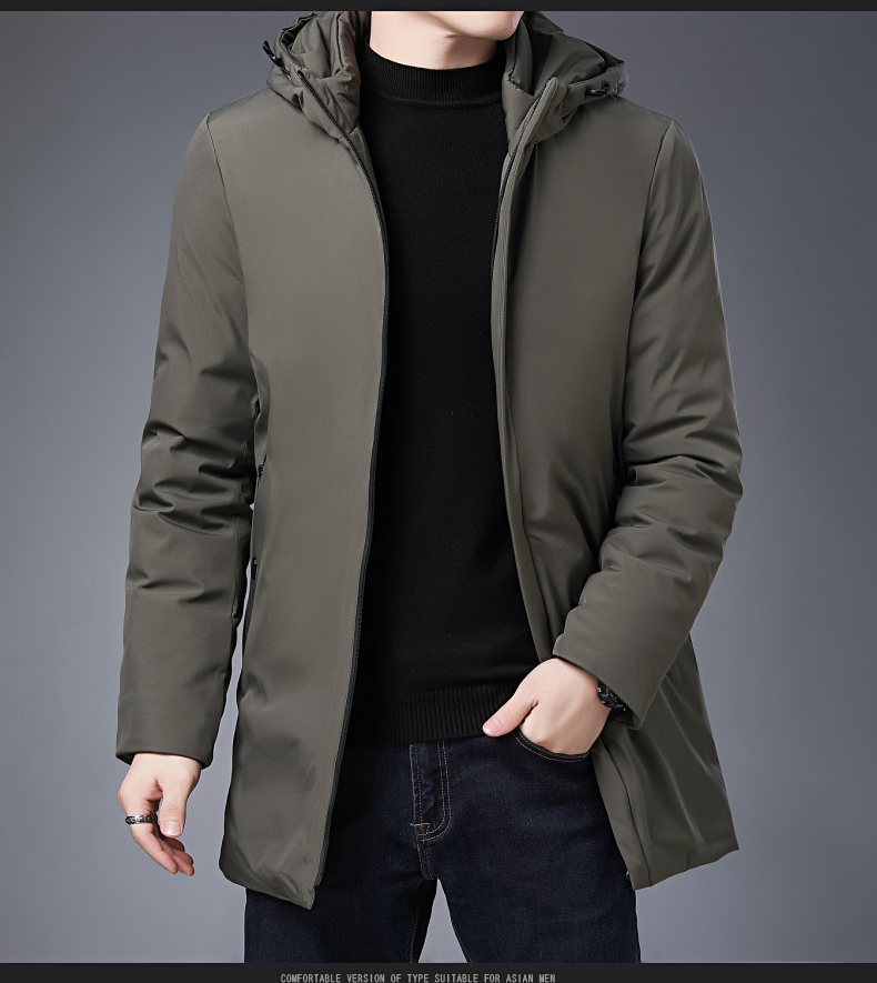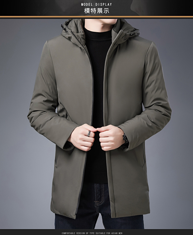 乔诺恩男士冬季中长款羽绒棉服保暖上衣纯色简约连帽棉服棉衣帅气