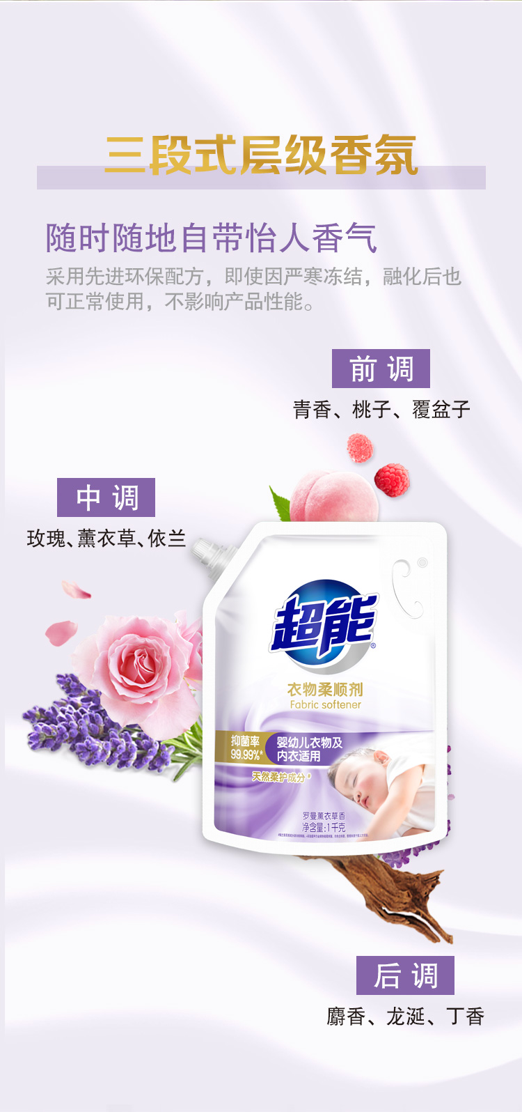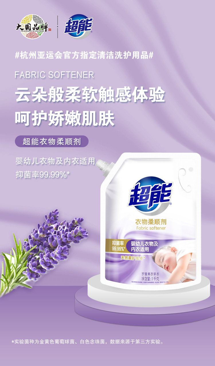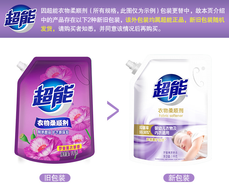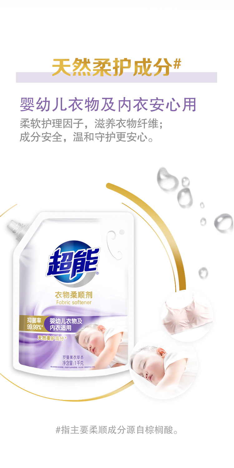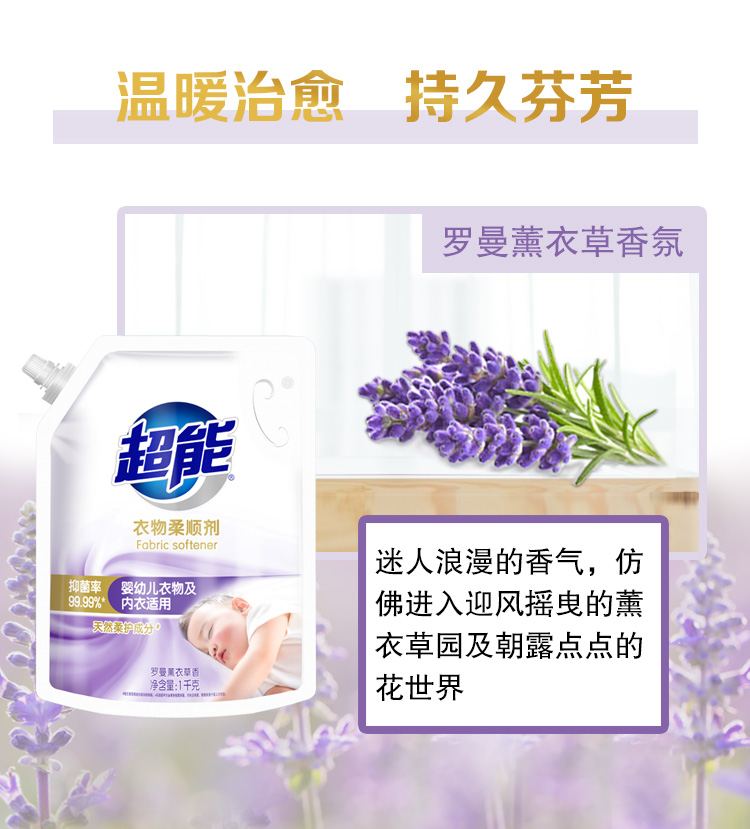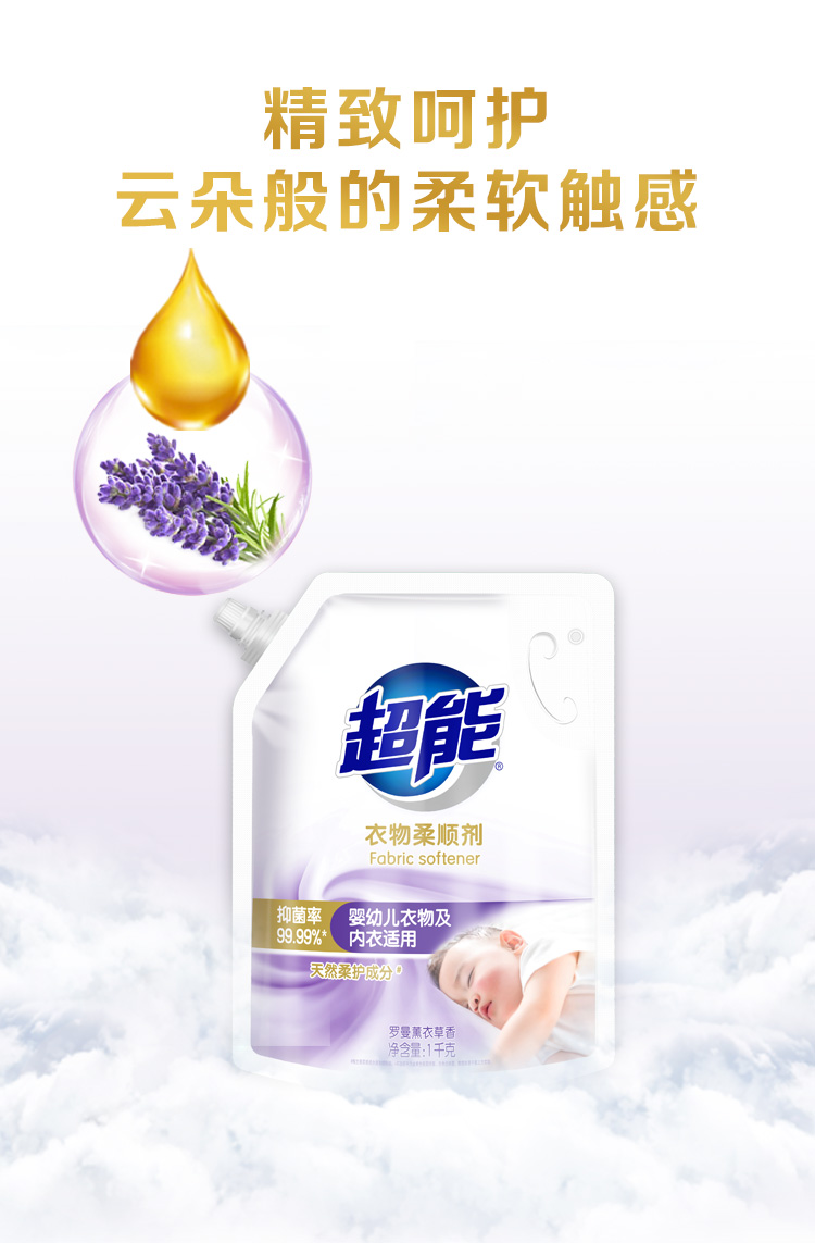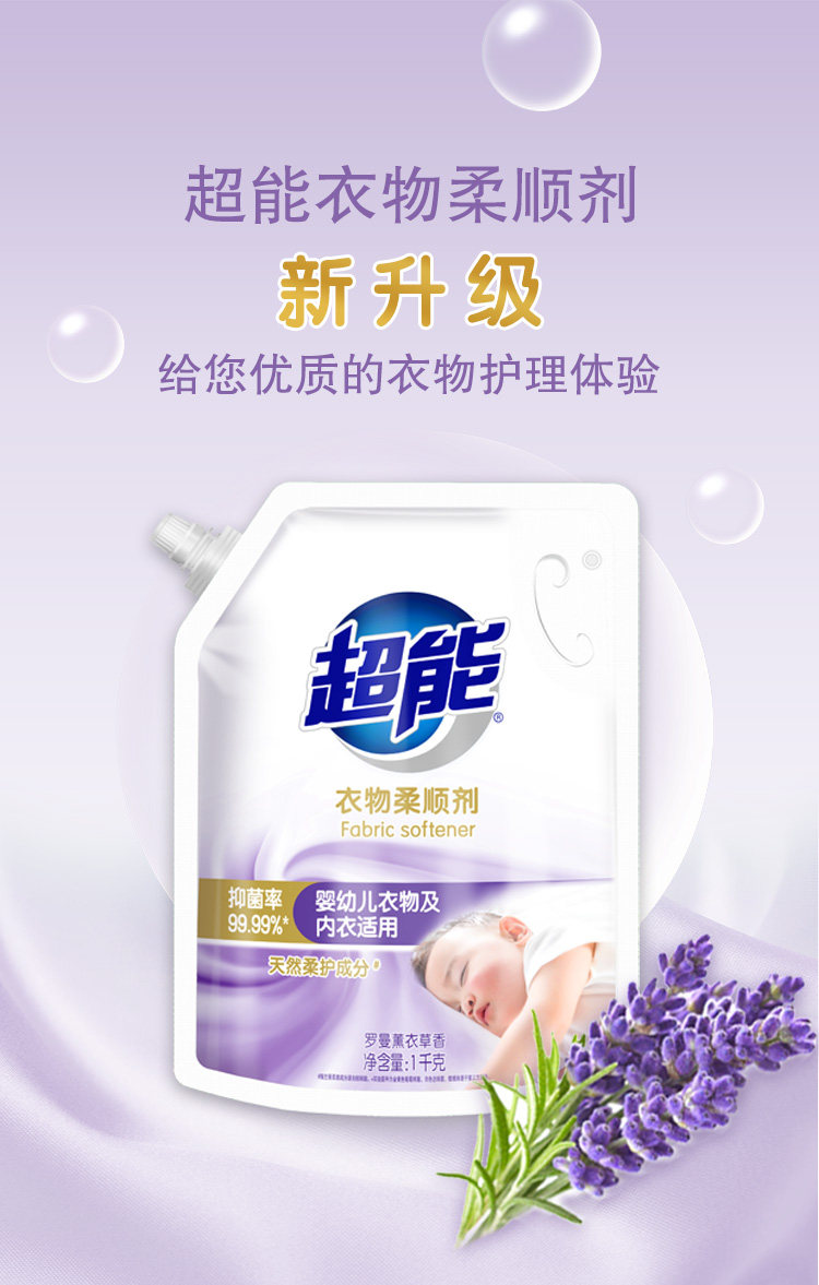超能衣物柔顺剂家用袋装防静电薰衣草柔软剂香味持久补充装护理剂