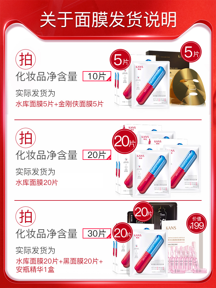 韩束玻尿酸面膜女补水保湿控油清洁晒后修护收缩毛孔男士学生正品
