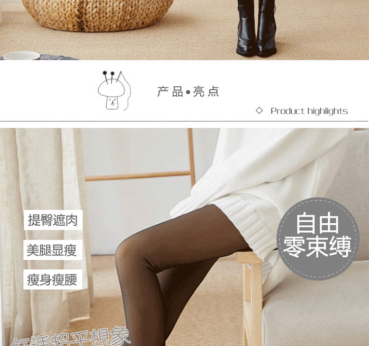 高端高档空姐灰真透肤假透肉打底裤女外穿高腰弹力加绒加厚500g