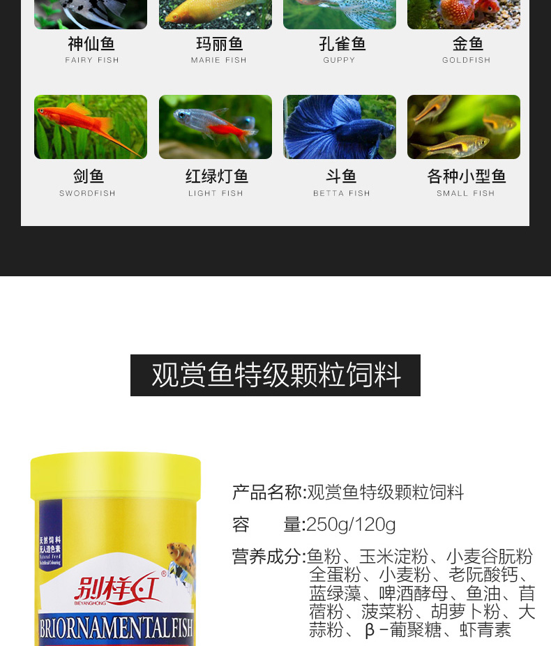 热带鱼饲料斗鱼鱼食灯科鱼小型鱼孔雀鱼小颗粒鱼粮薄片 微粒 贴片