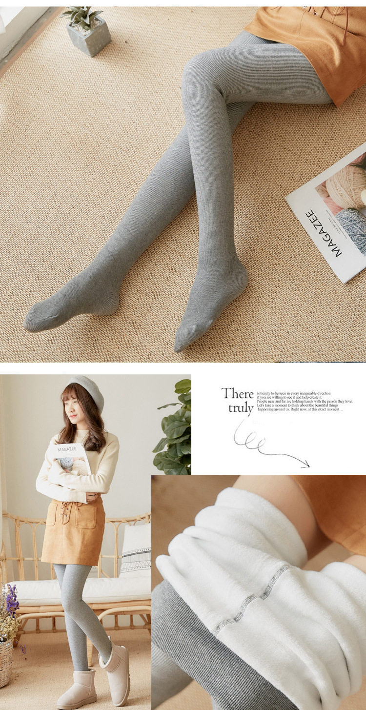 高端高档竖条纹纯棉打底裤2019秋冬新款女外穿显瘦加绒加厚保暖裤