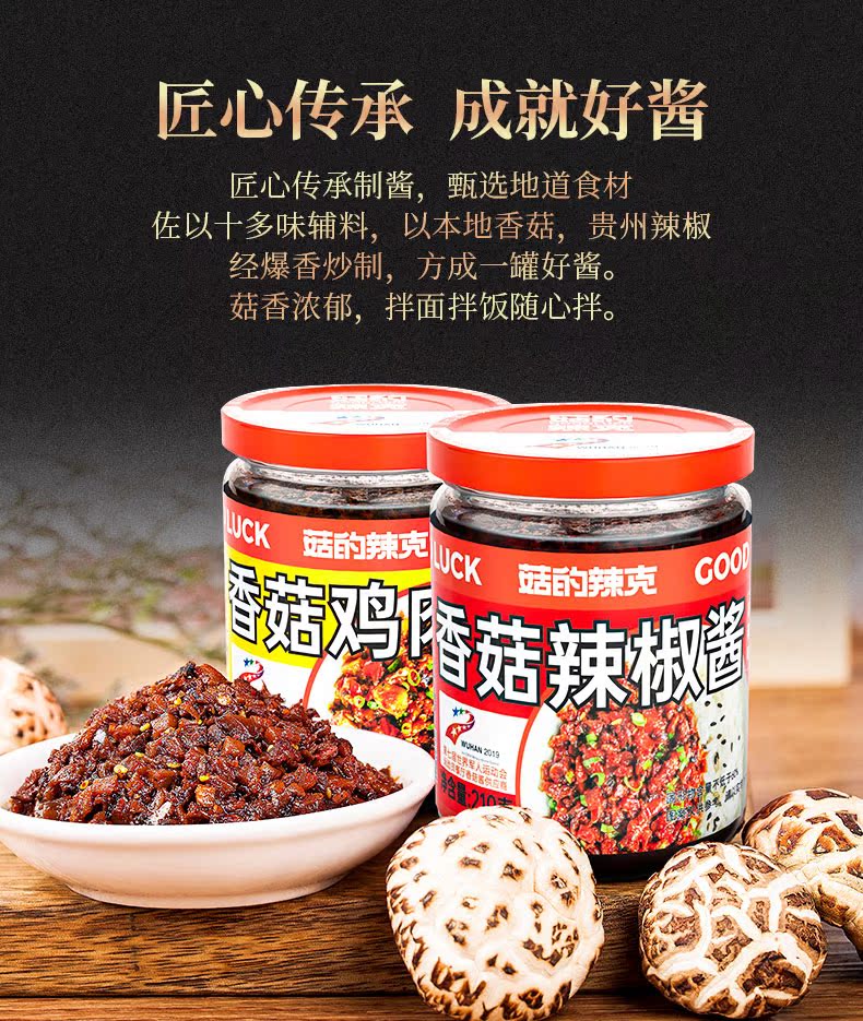 菇的辣克香辣香菇酱210g*2瓶 香菇鸡肉酱拌饭酱拌面酱瓶装下饭酱