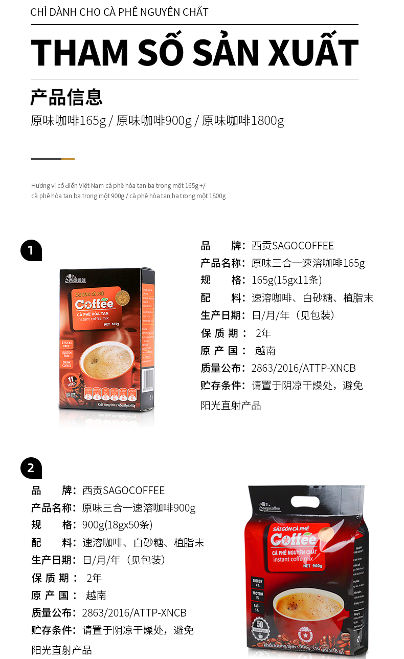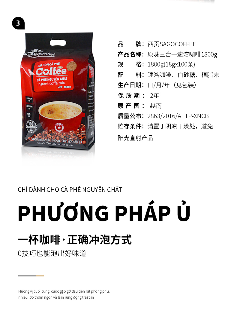 越南原装进口西贡咖啡粉袋装三合一速溶咖啡原味50条装900g正品