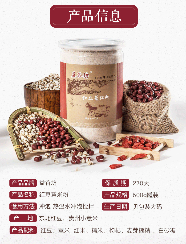 【买2送1】益谷坊红豆薏米薏仁粉 益五谷百老颐金磨房年坊旗舰店