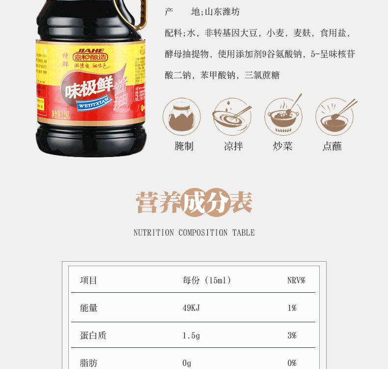 甄选非转基因大豆,零添加,经过180天足期晒制工艺,咸甜适度,酱香浓郁,给食物增添美妙爽口好滋味~健康酱油美味又健康,用心做好酱油!【赠运费险】
