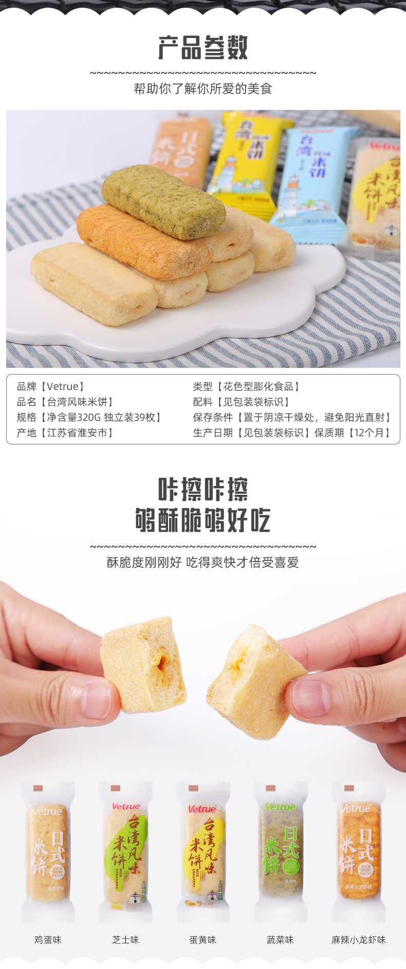 Vetrue惟度米卷饼台湾风味日式米饼320g*3包膨化零食小吃休闲食品