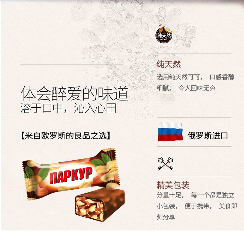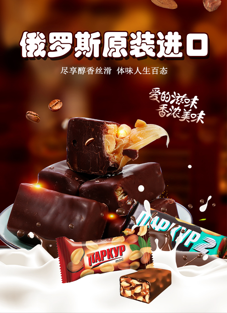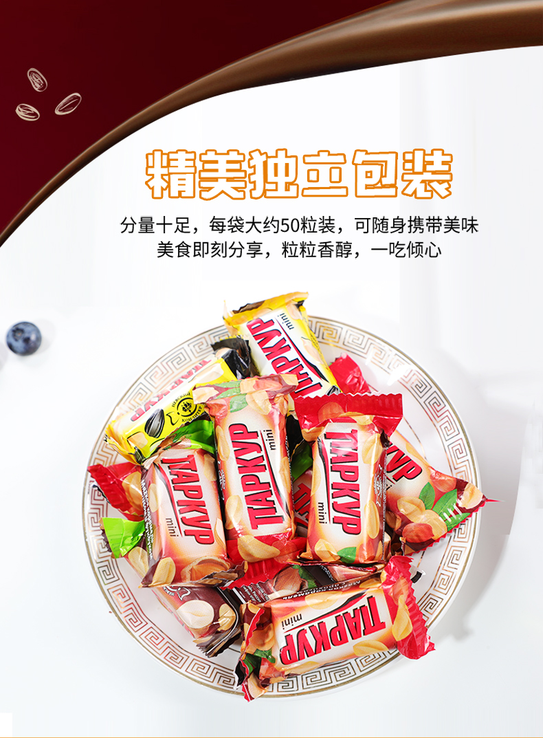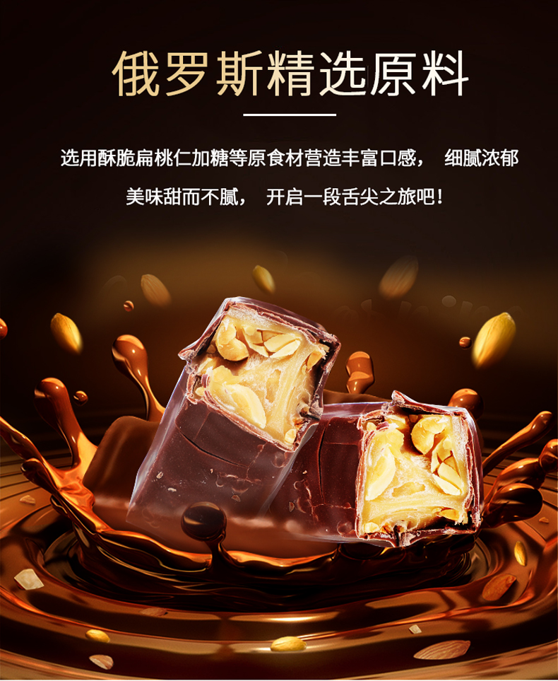 【俄罗斯原装进口】浓香巧克力涂层,香脆夹心花生,口口醇香,甜而不腻,牛轧糖口感,多种口味可选,好吃的不得了