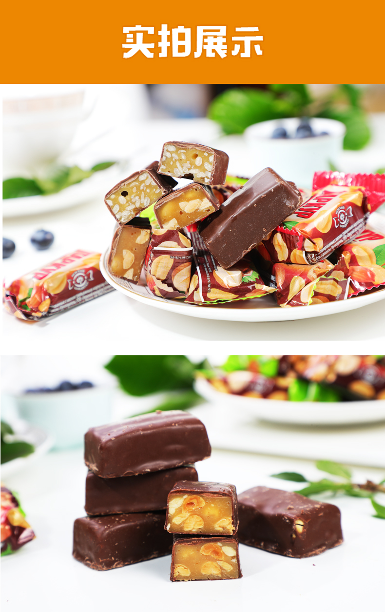 俄罗斯能量架花生夹心巧克力糖果牛轧婚庆喜糖2斤装1000g进口食品