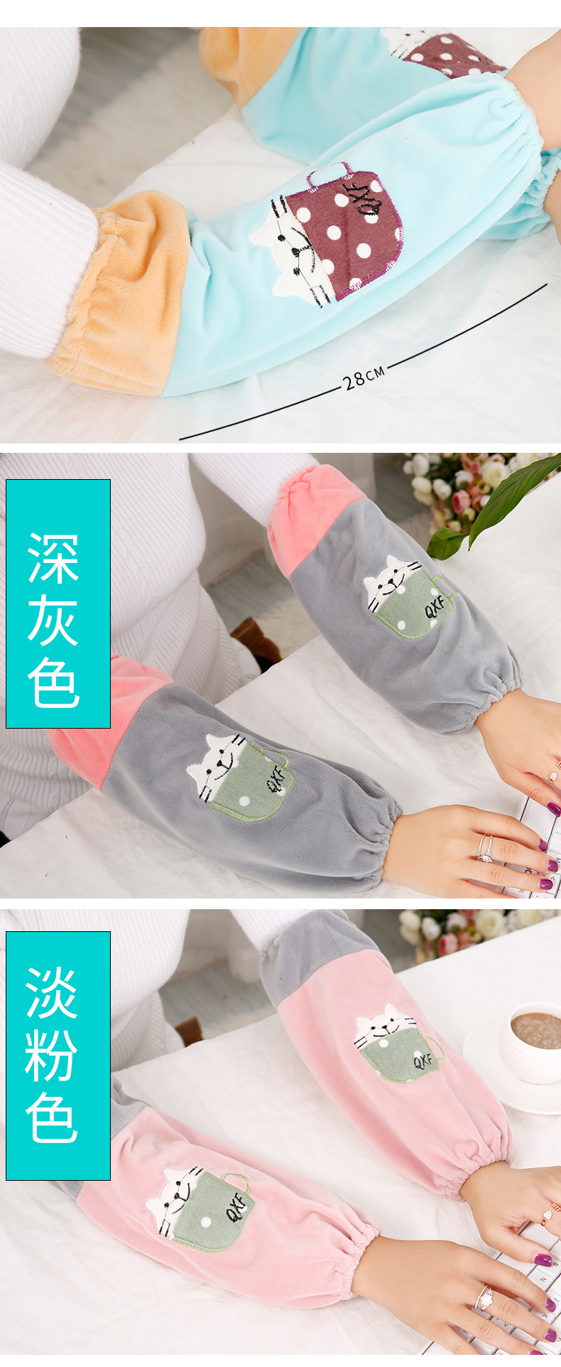 秋冬袖口防脏必备,带上告别污渍。款式新颖,印花图案很可爱,不管是办公、学习还是做家务都可以佩戴!