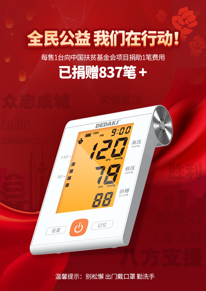 德国DEDAKJ电子血压计上臂式量血压高全自动医用高精准血压测量仪