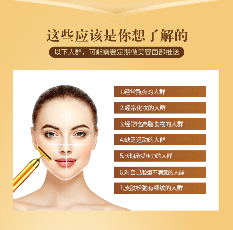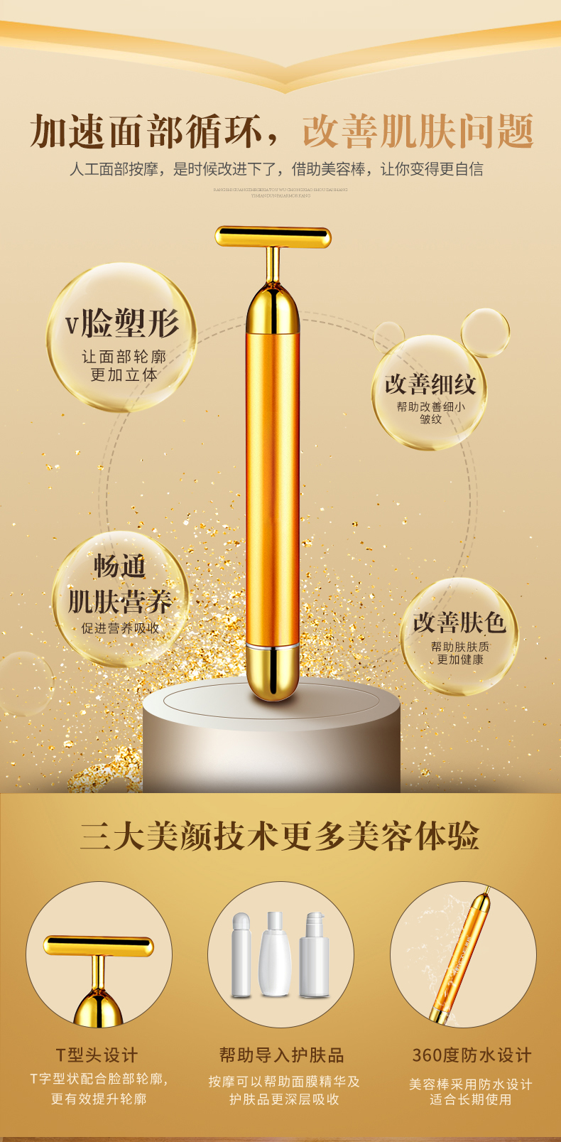 Mericle24k色黄金美容棒,面部美容仪,V脸部按摩器