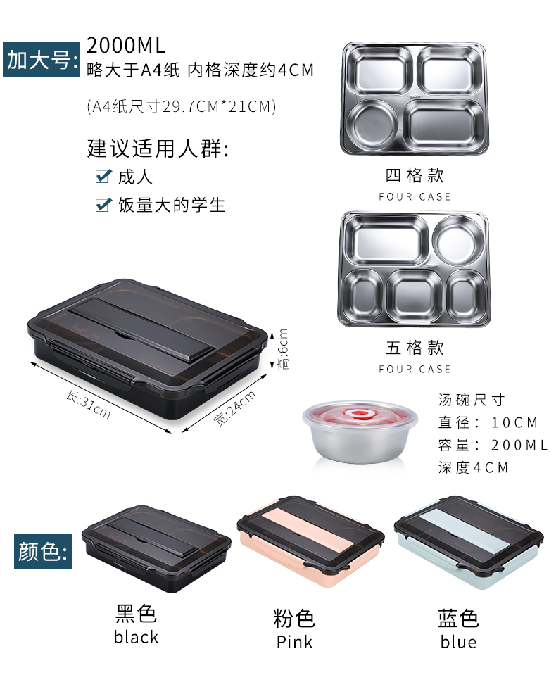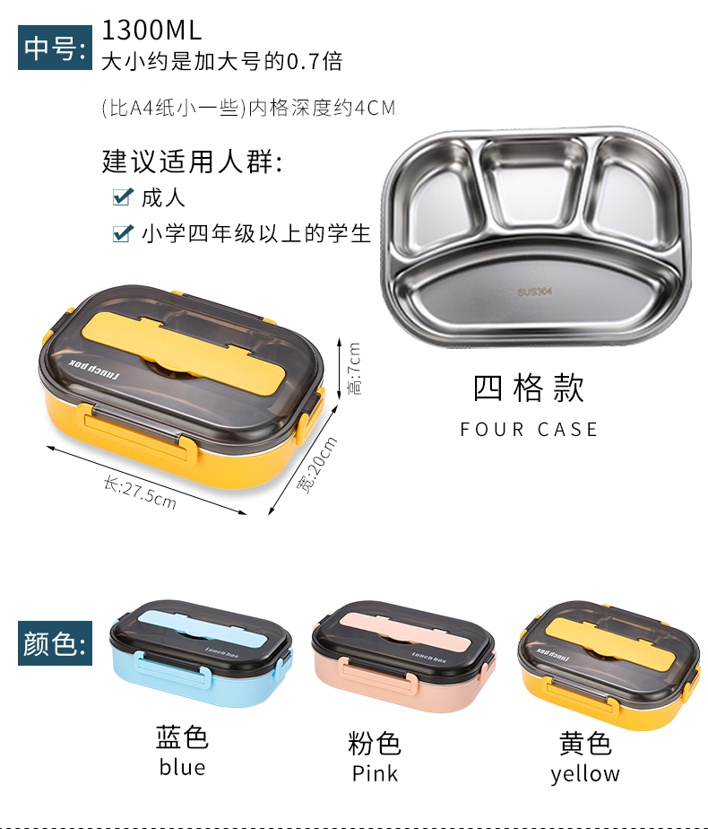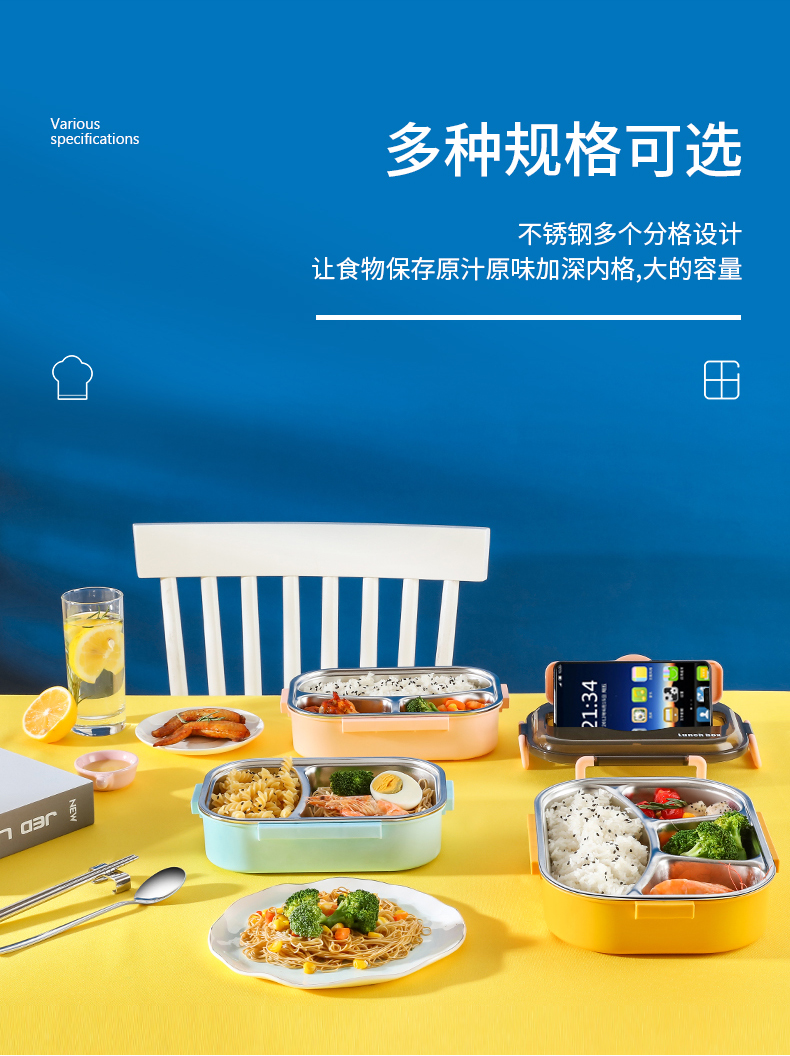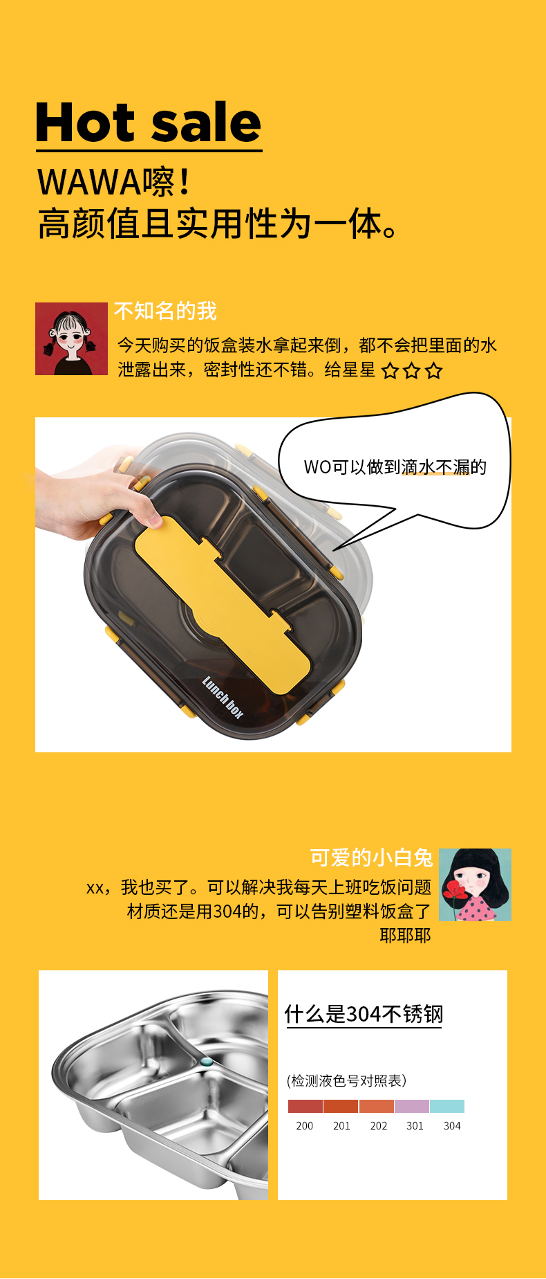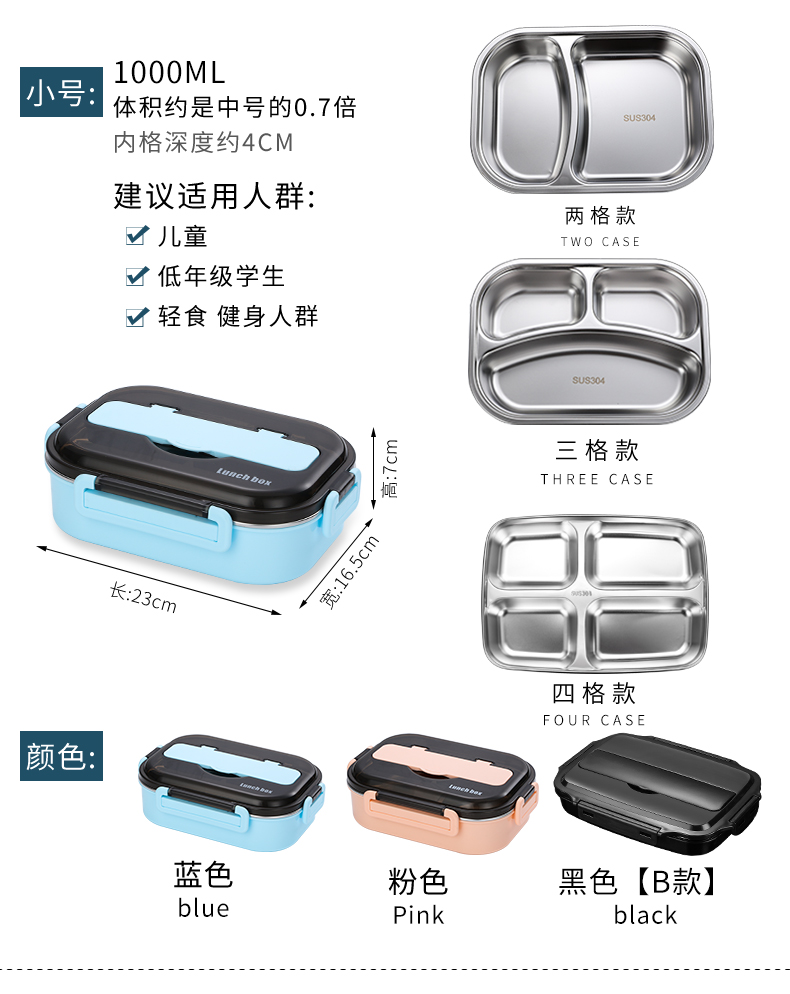 【送304筷子勺子套装】品质饭盒,天然环保,锁住新鲜,防止细菌滋生,材质安全,压防摔,坚固耐用,小身材大容量,密封防漏,保温小巧便携