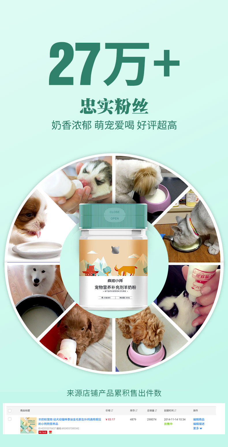 疯狂的小狗旗舰店,犬猫通用,DHA配方羊奶粉,天然牧场奶源,提供优质蛋白质,浓浓好羊奶,伴随爱宠一生