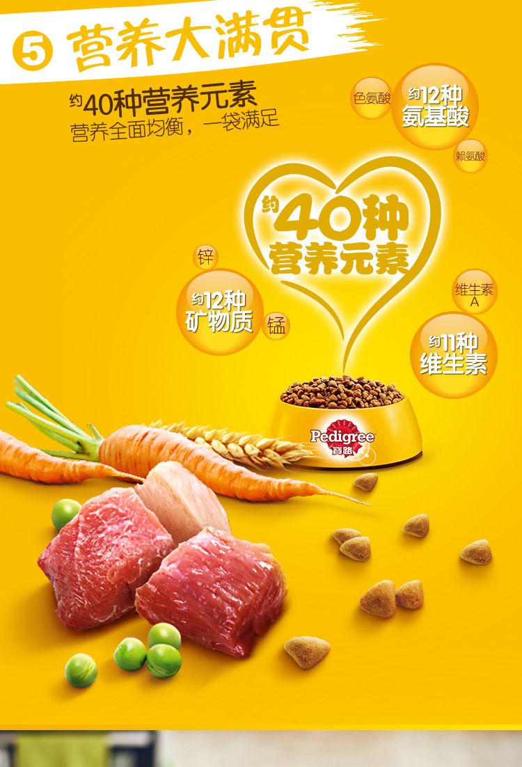 科学配比,营养丰富,有效增强免疫力,改善体质,亮泽皮毛,淡化泪痕,一袋满足狗狗所需全面营养,让狗狗健康成长,全球8500万狗狗的选择!