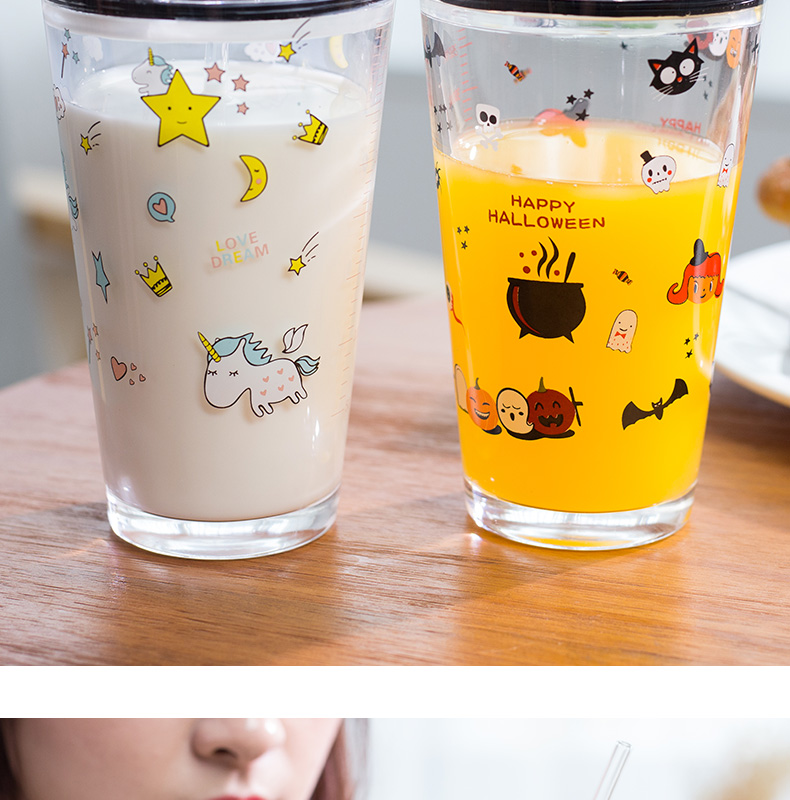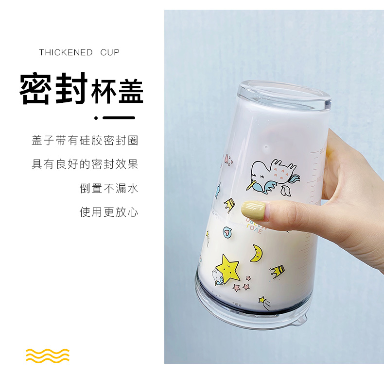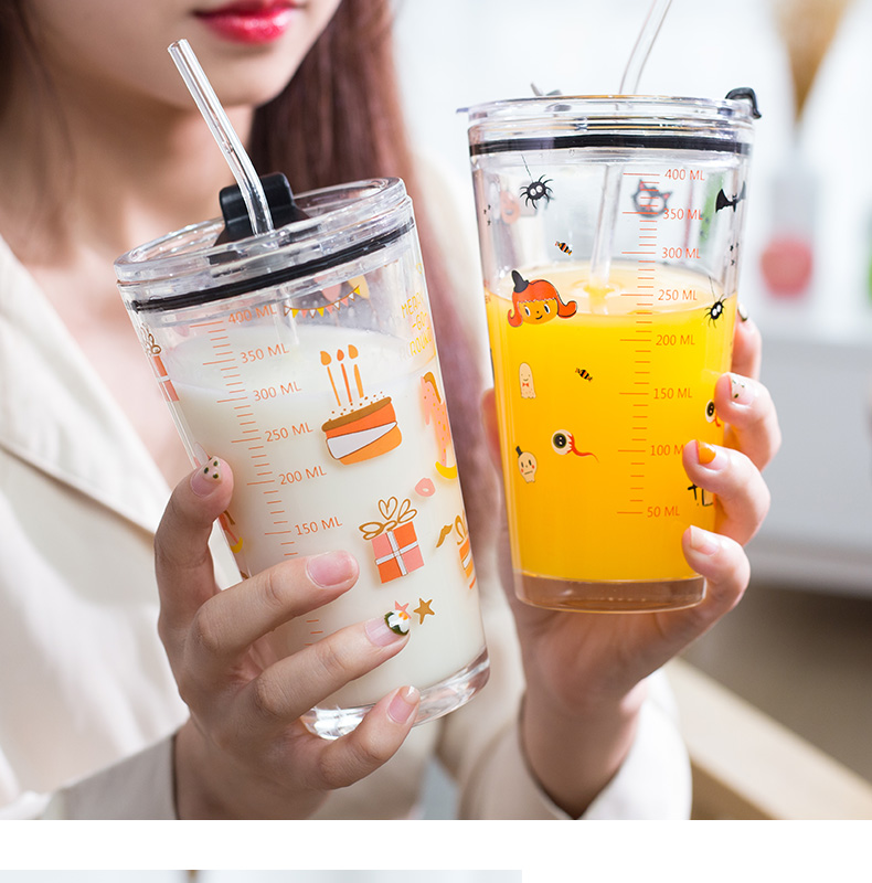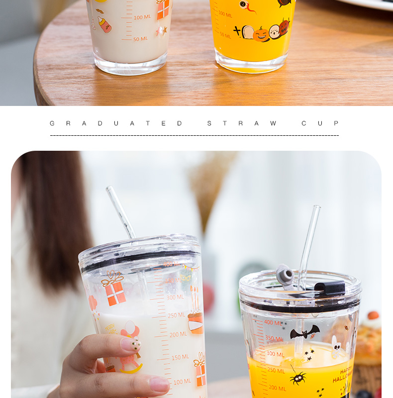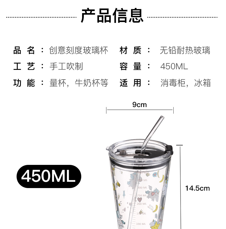 森系刻度杯牛奶早餐耐热家用带盖吸管杯儿童创意女学生网红玻璃杯