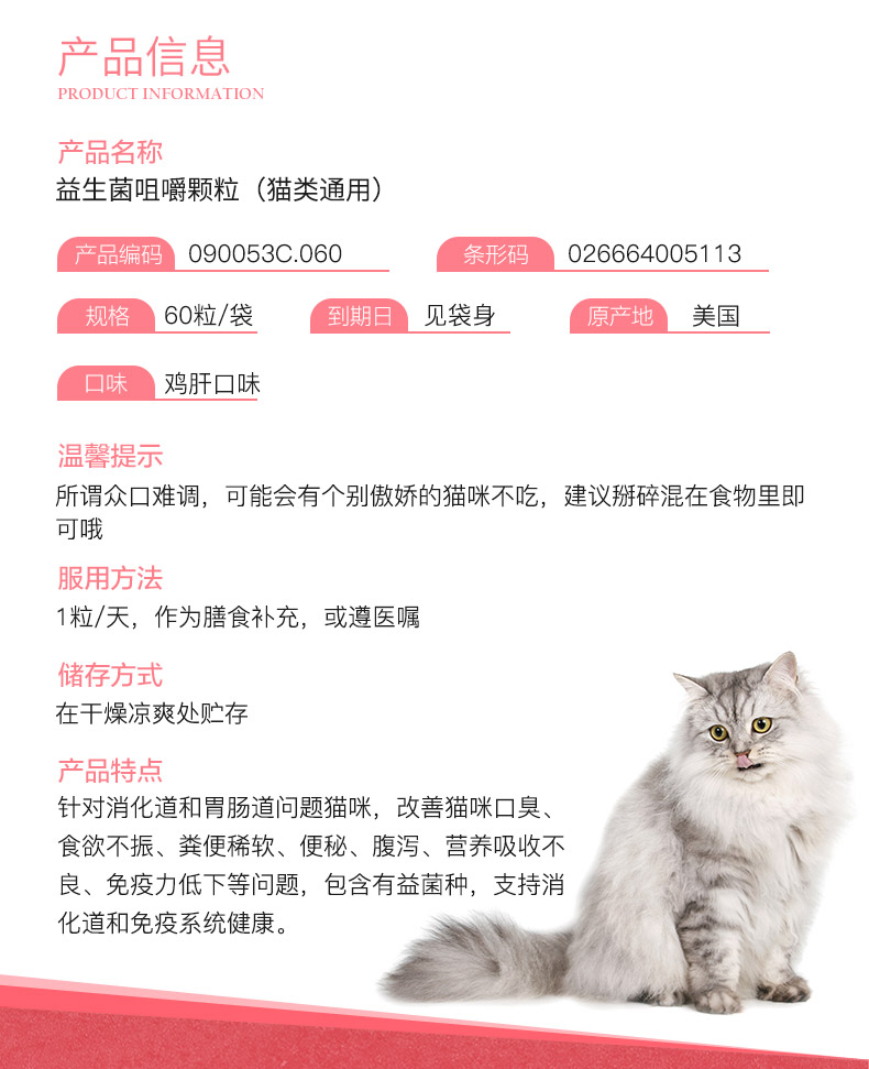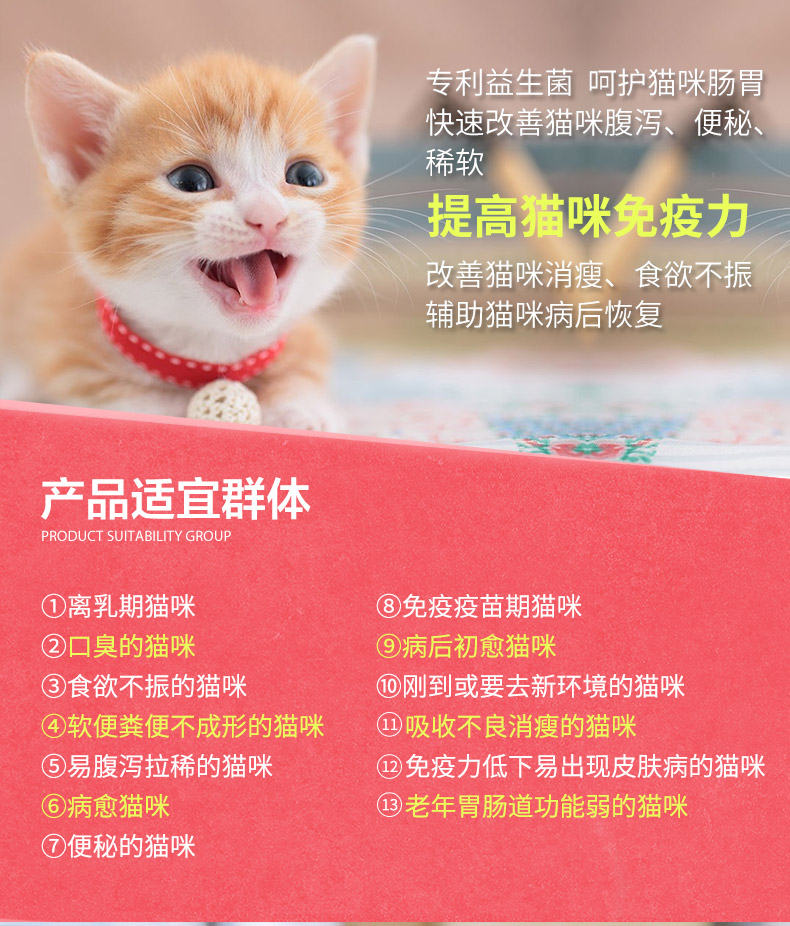 猫类通用,10亿活性益生菌,呵护猫咪肠胃,快速改善猫咪腹泻,便秘,稀软,提高猫咪免疫力