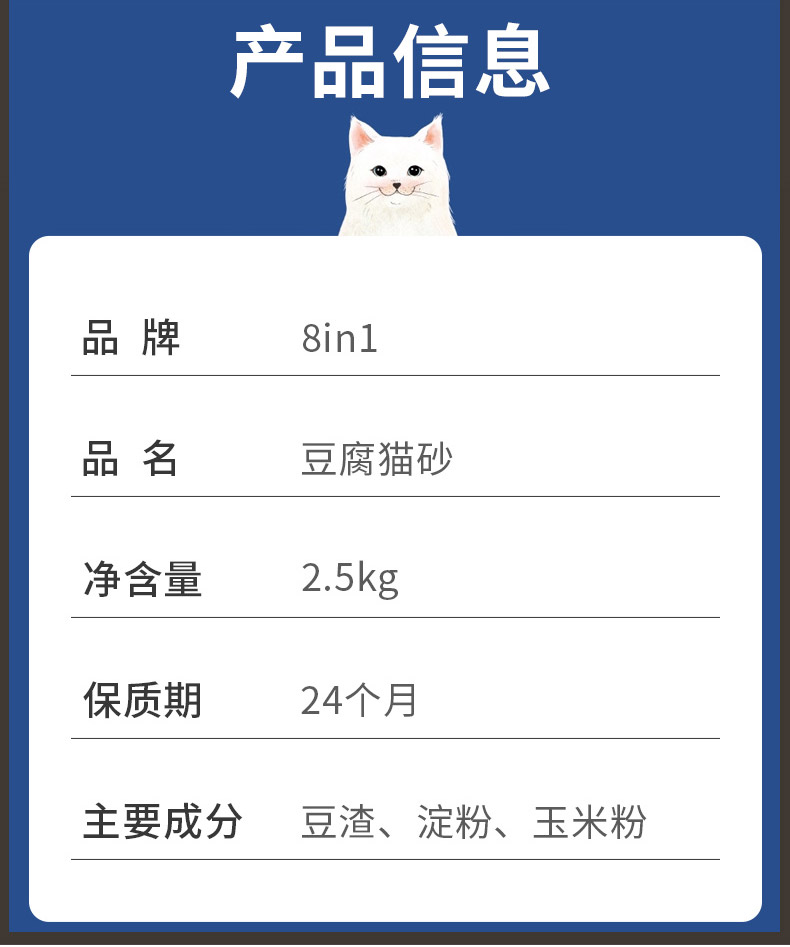 8in1天然奇迹豆腐猫砂2.5kg绿茶香味除臭低尘大袋猫咪猫沙用品