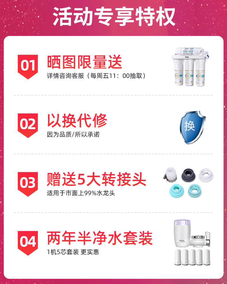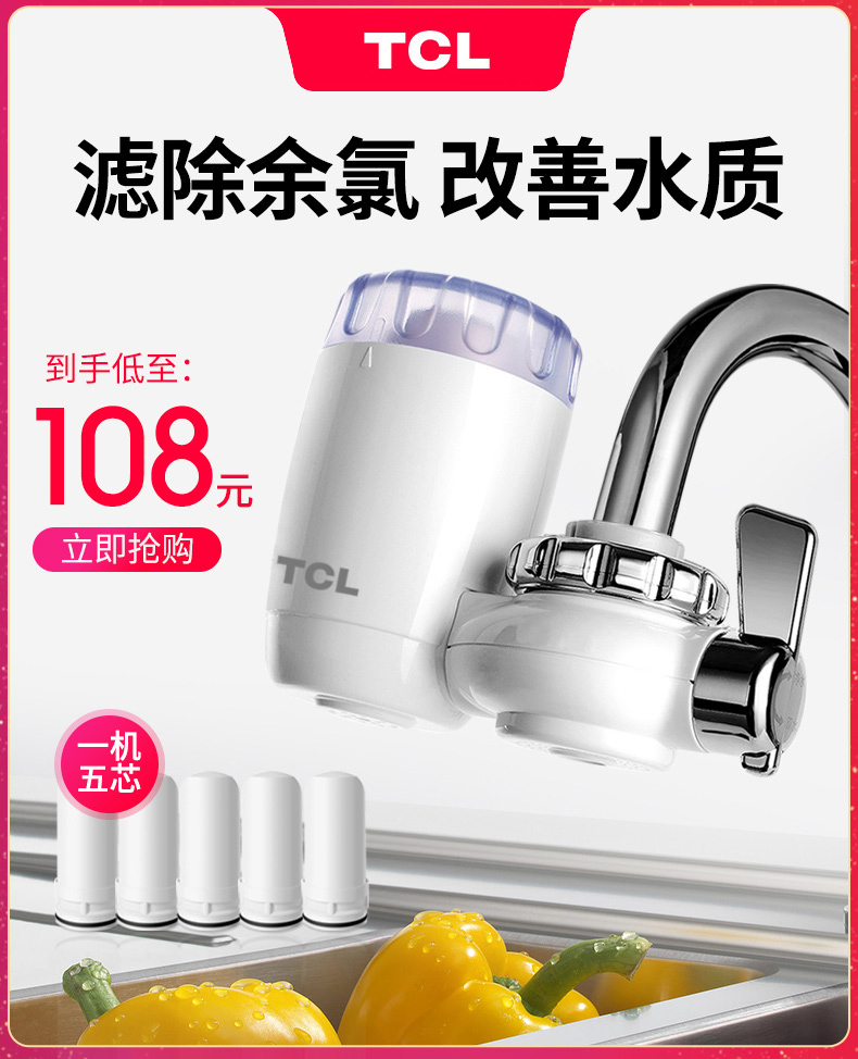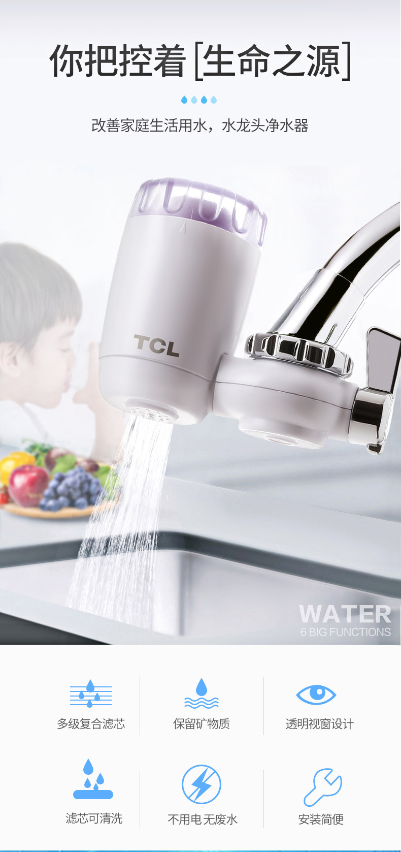 TCL净水器家用 厨房水龙头过滤器 自来水净化器滤水器直饮净水机