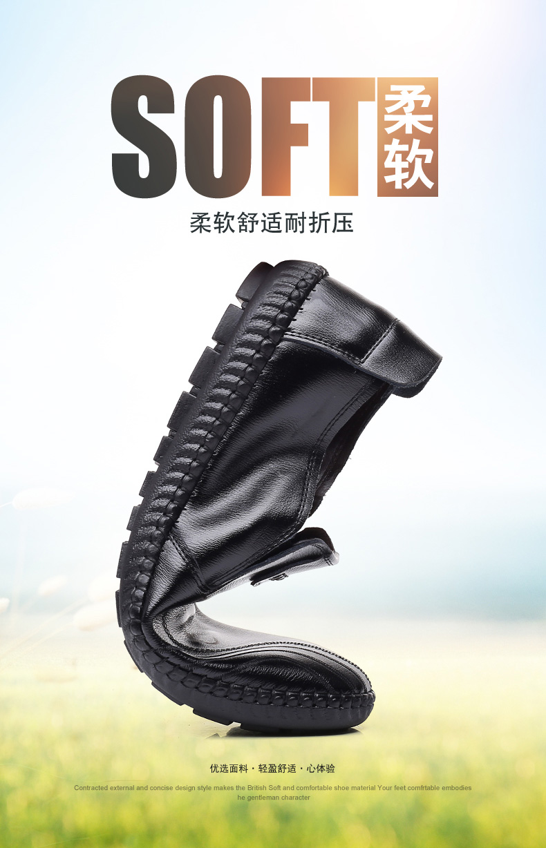 冬季新款妈妈鞋女中老年人加绒保暖简约平底皮棉鞋软底防滑女短靴