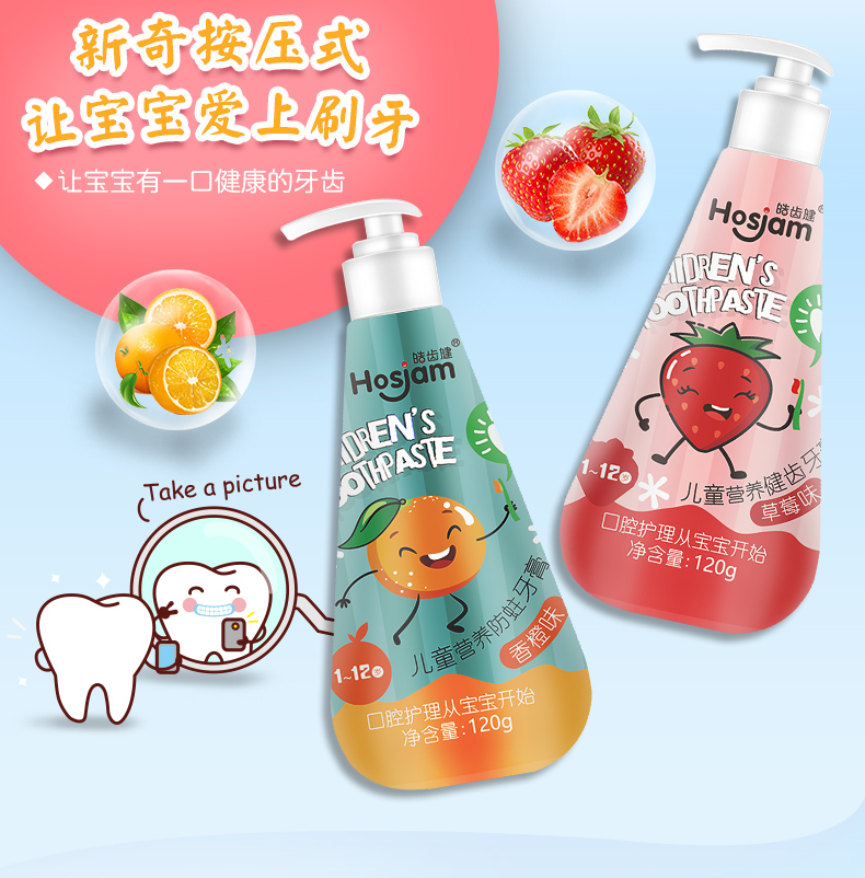 新奇按压式环保设计,更多营养配方,温和呵护宝宝稚嫩幼牙,多种口味可选,让宝宝爱上刷牙,拥有一口健康好牙齿
