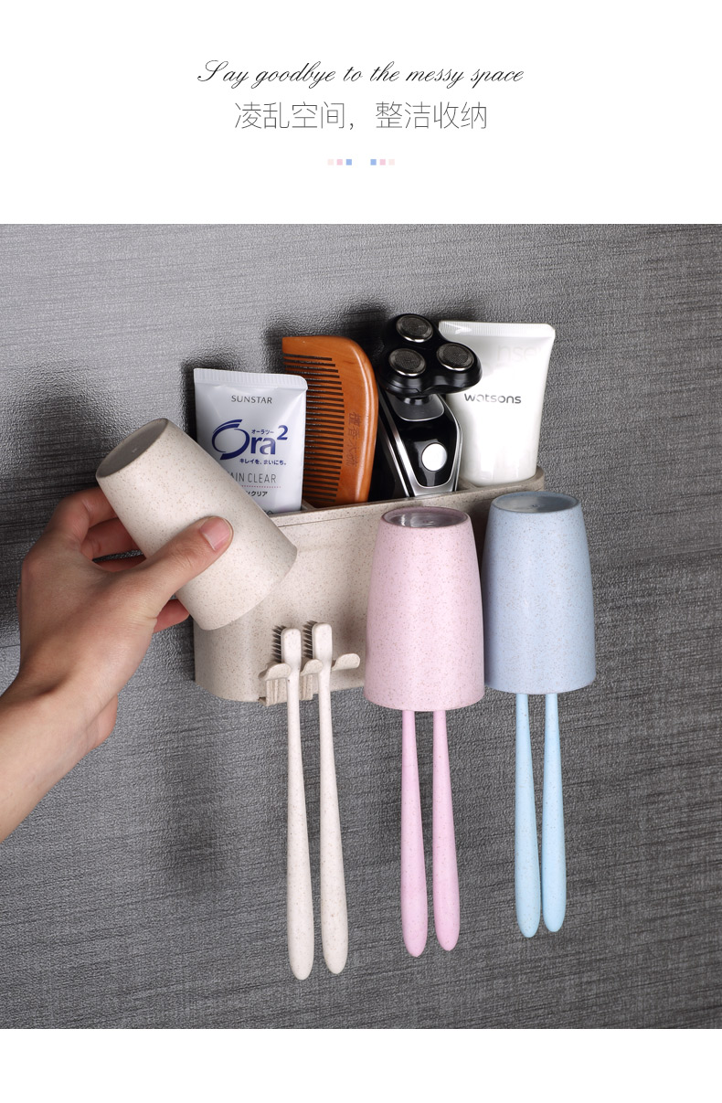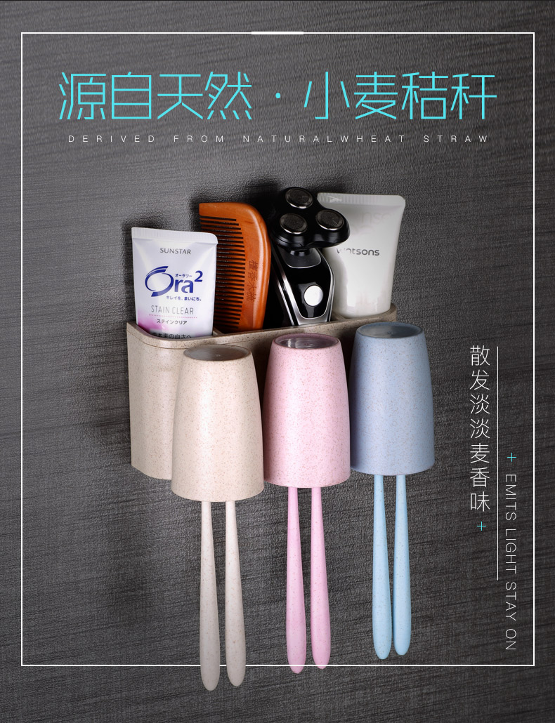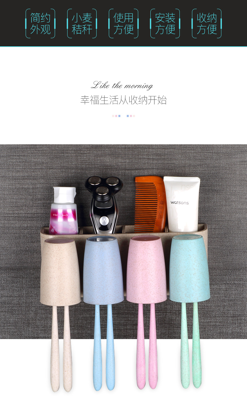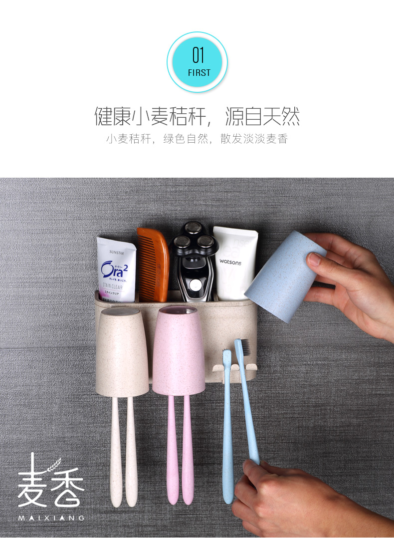 创意壁挂牙膏牙刷架套装,健康麦秸材质,安装便捷,免钉免砖,不伤墙面,而人牙刷架,功能多样,防尘防水溅,干净卫生,让你恋上早晨,爱上刷牙~