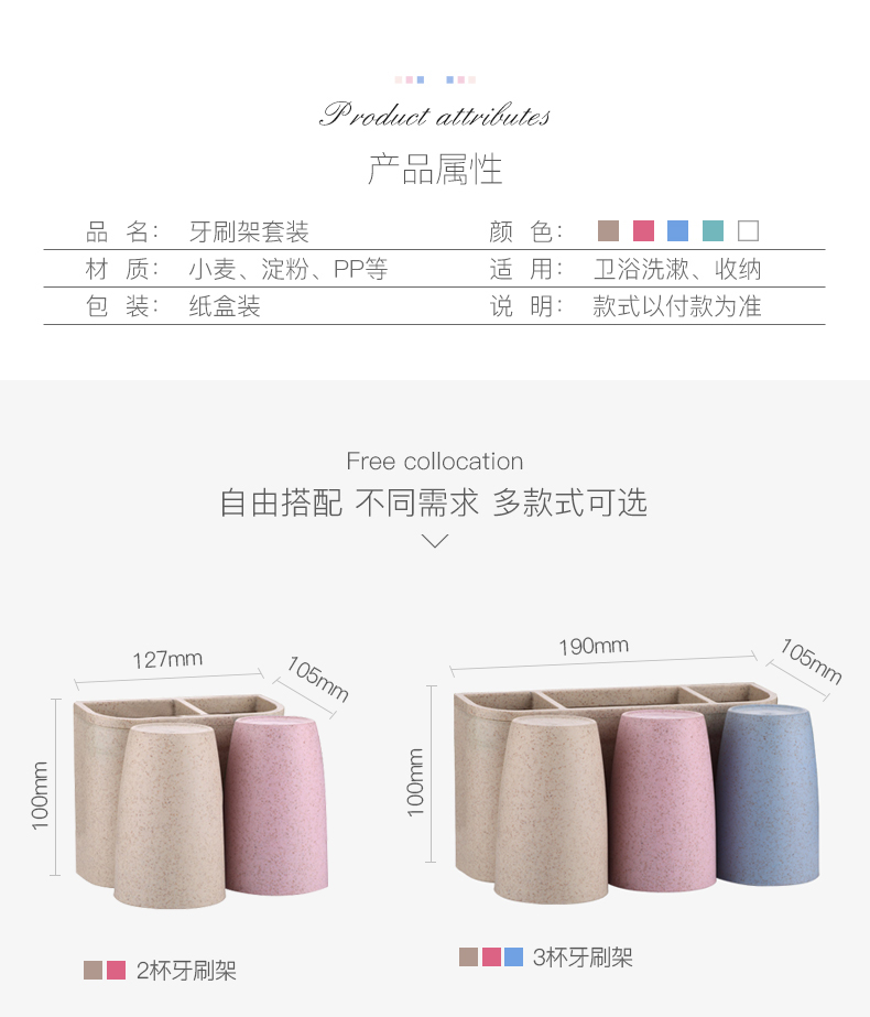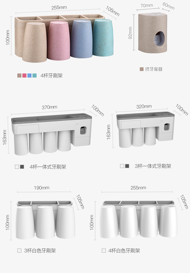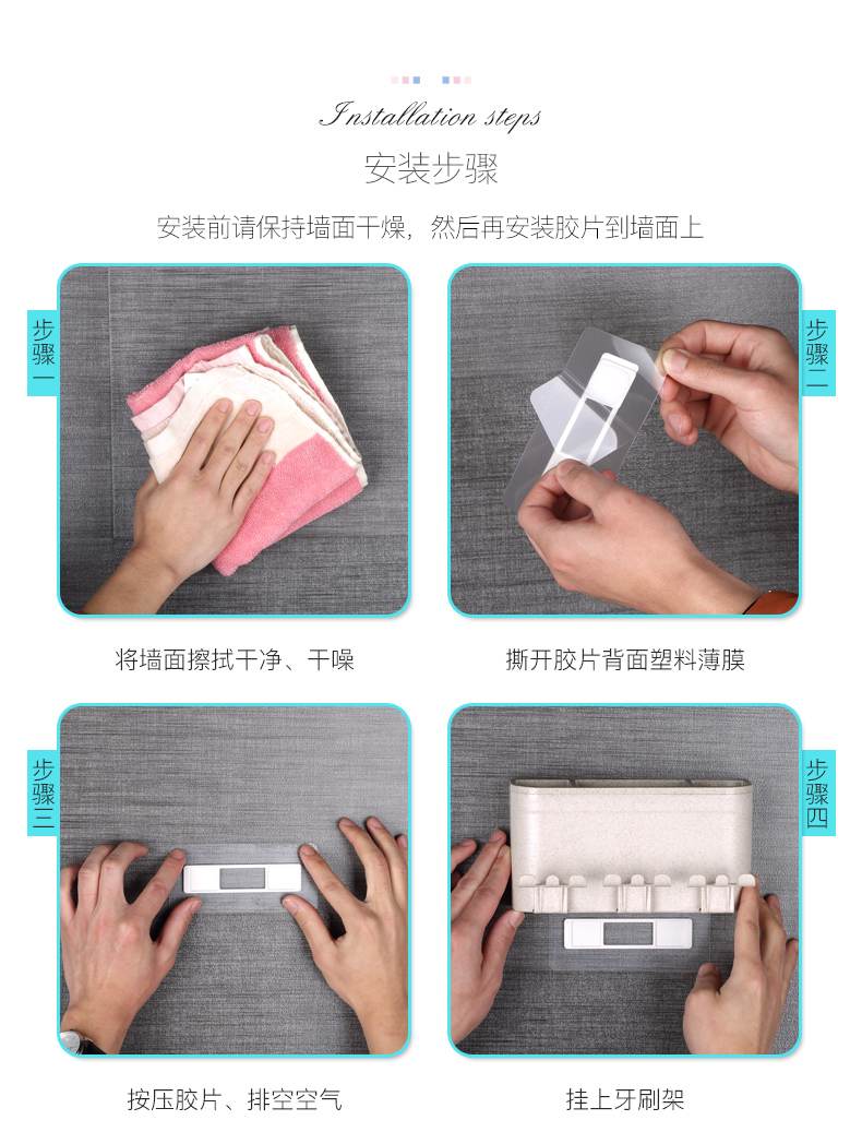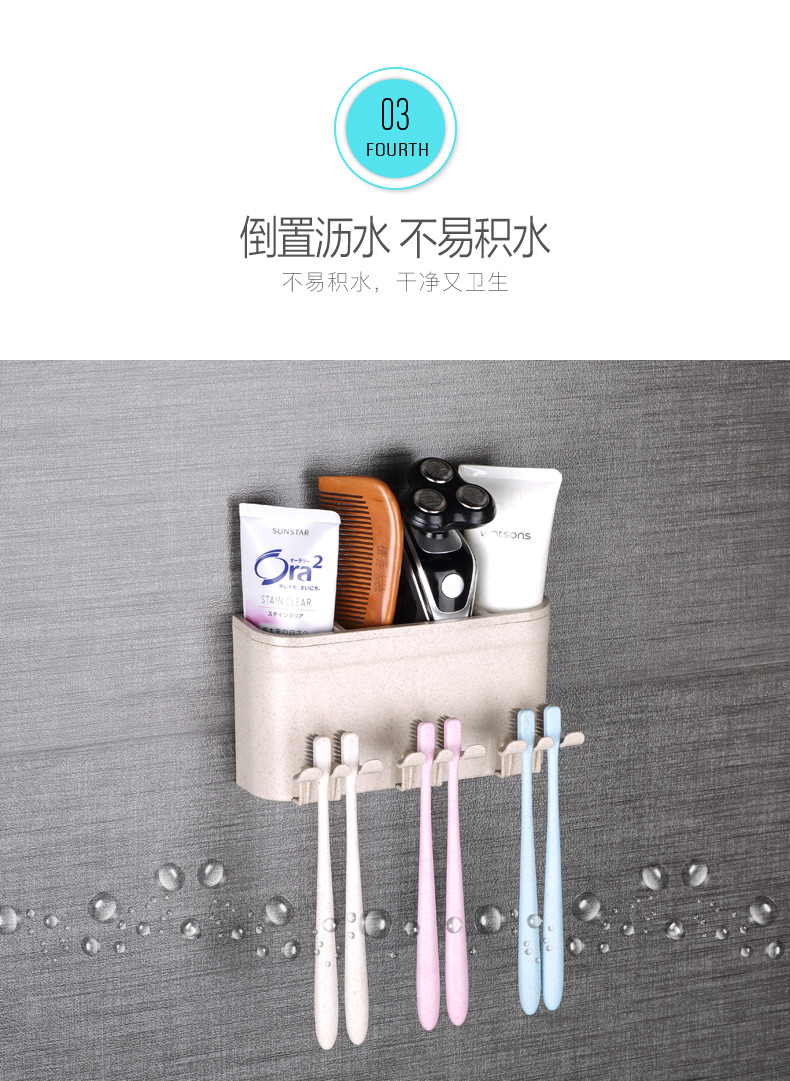创意壁挂牙膏牙刷架套装,健康麦秸材质,安装便捷,免钉免砖,不伤墙面,而人牙刷架,功能多样,防尘防水溅,干净卫生,让你恋上早晨,爱上刷牙~