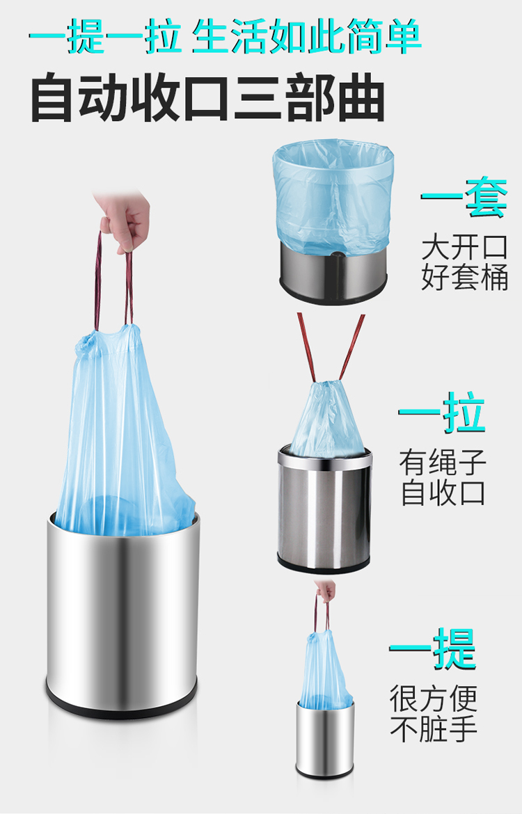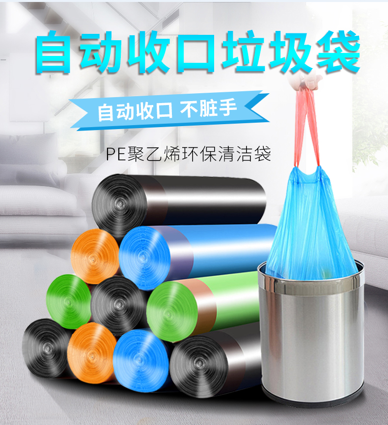 垃圾袋家用加厚手提式黑色批发宿舍用学生抽绳拉极自动收口塑料袋