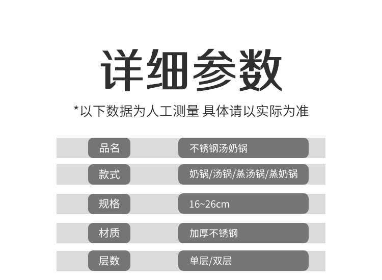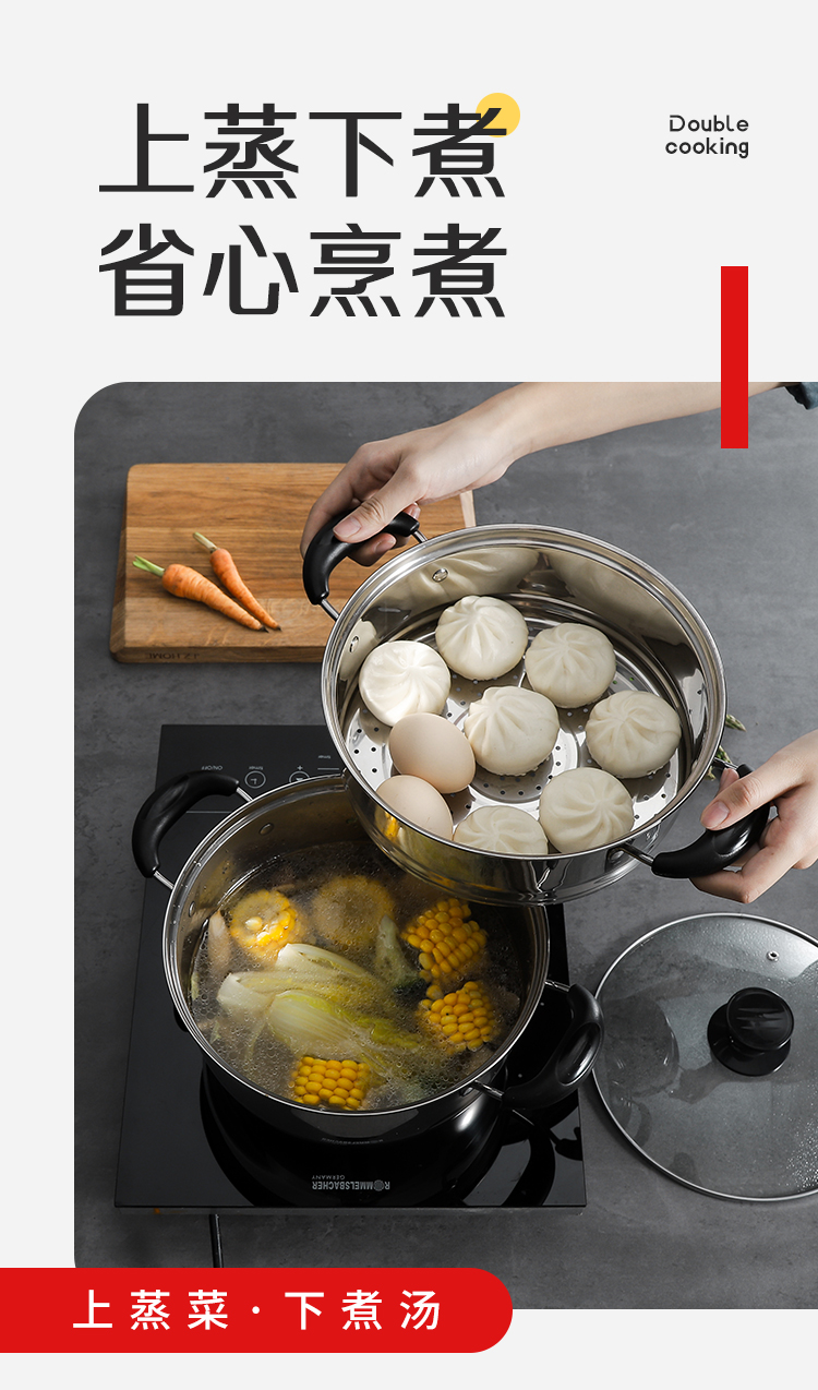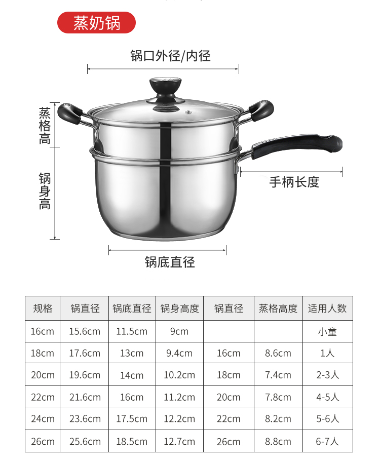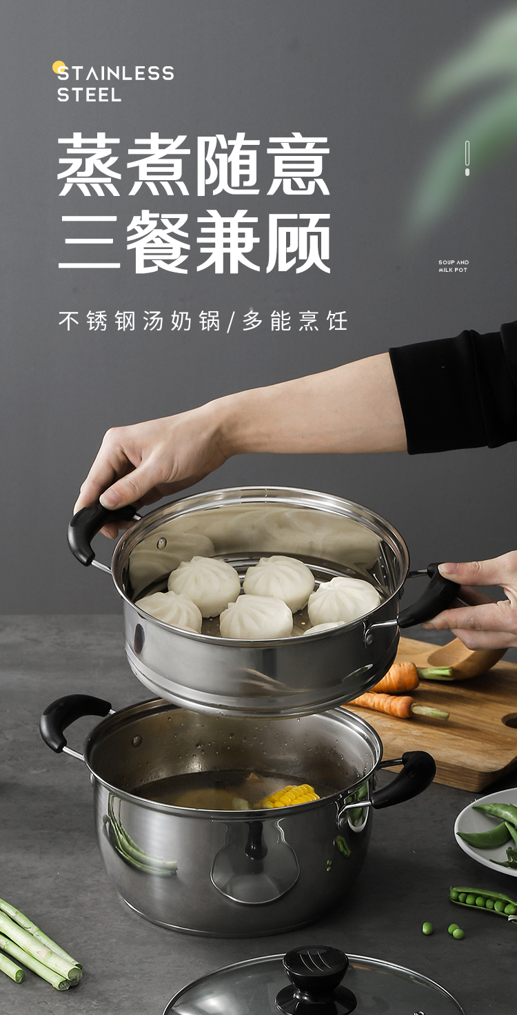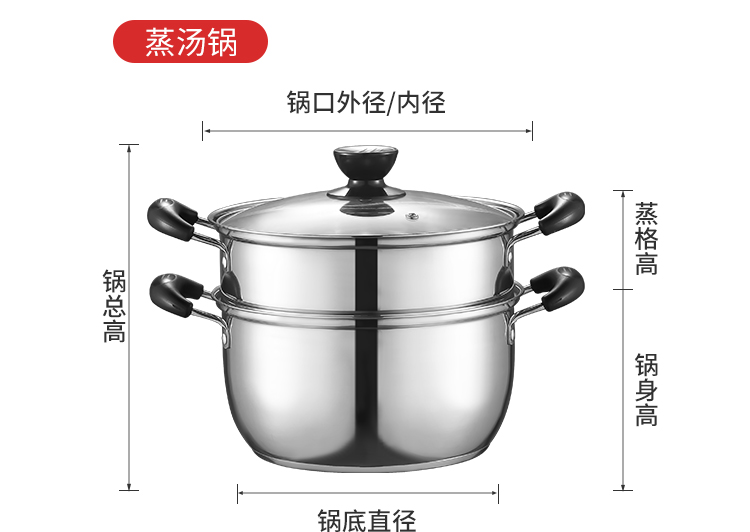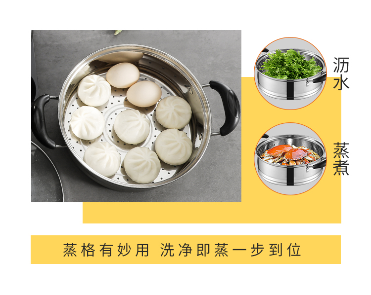 加厚不锈钢材质,坚固耐用,电磁炉燃气灶都可用!防烫手柄,安全放心,易清洗,经久耐用!