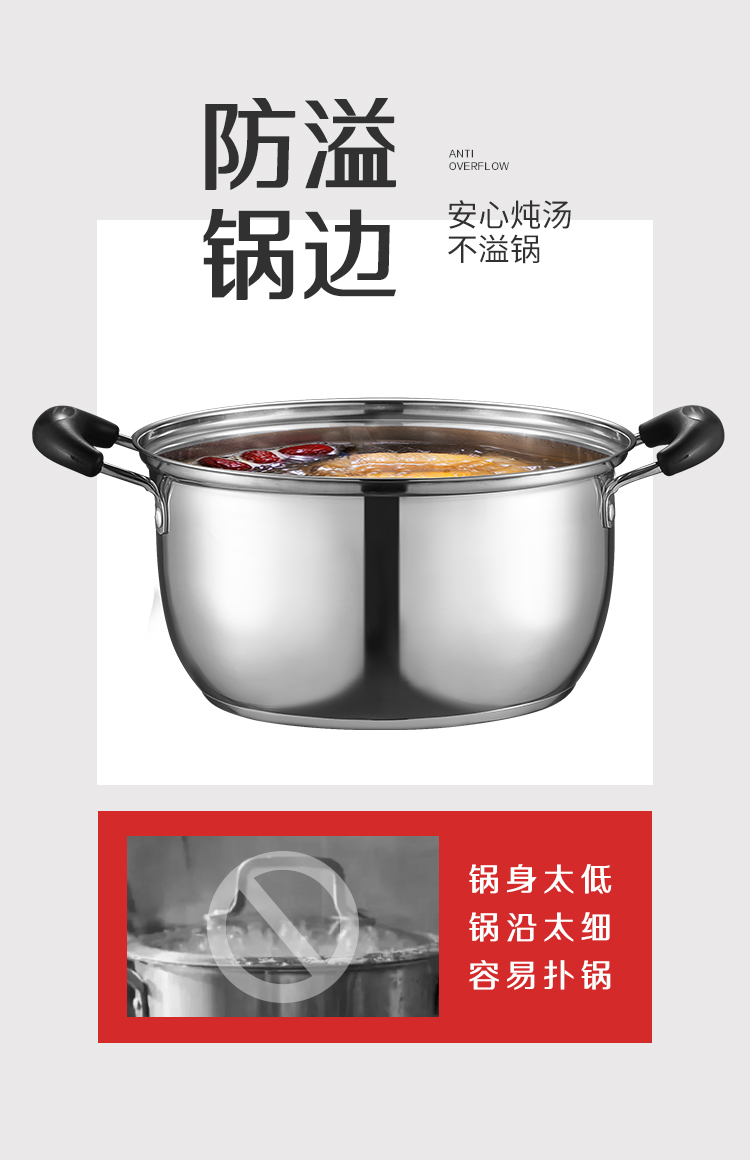 加厚不锈钢汤锅蒸锅熬汤锅小火锅家用双耳煮锅燃气奶锅电磁炉专用