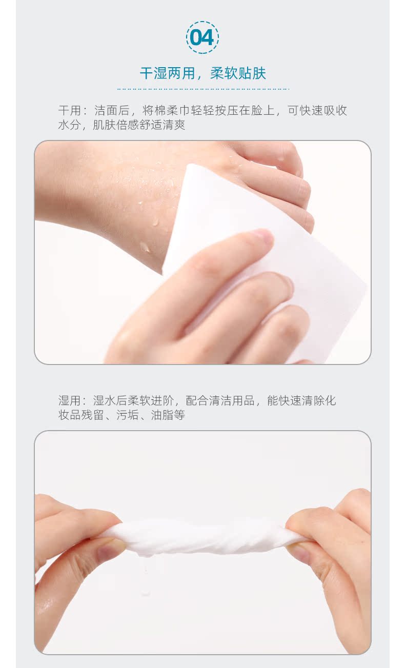 一次性纯棉加厚网纹洗脸巾干湿两用。采用的天然海岛棉,以优质纯棉加匠心精神,呵护您的肌肤健康;不含荧光剂,食品级品质,安全更更放心;