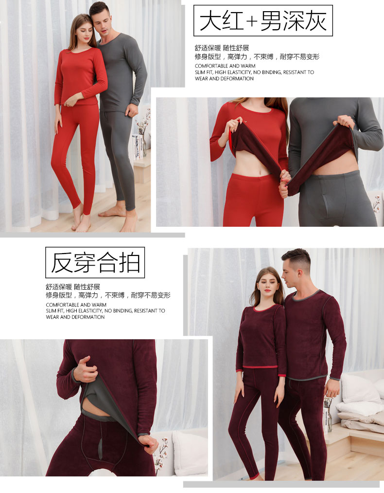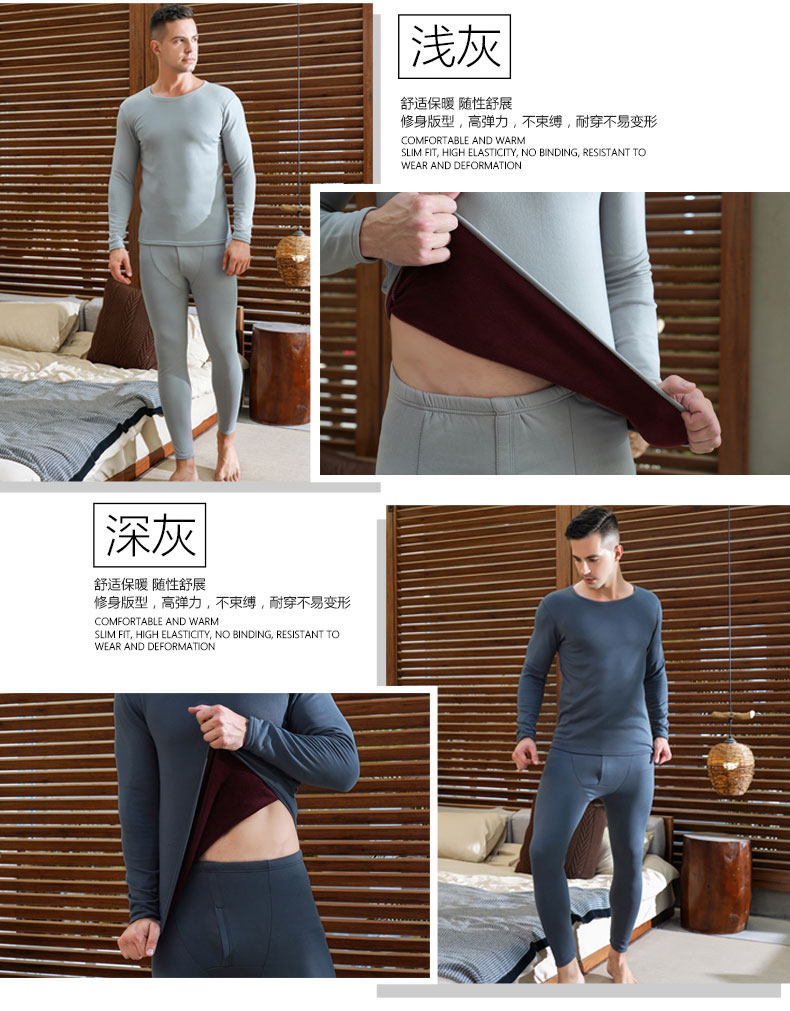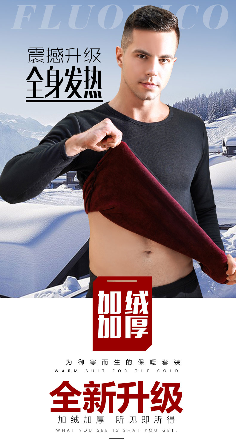 无痕保暖内衣男青年薄款V领加绒防寒套装自发热可外穿冬季秋衣裤