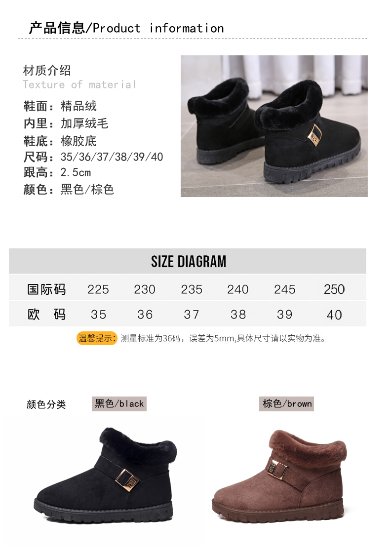 颐娉冬季雪地靴女时尚加绒加厚女靴韩版百搭短靴棉鞋女保暖雪地靴