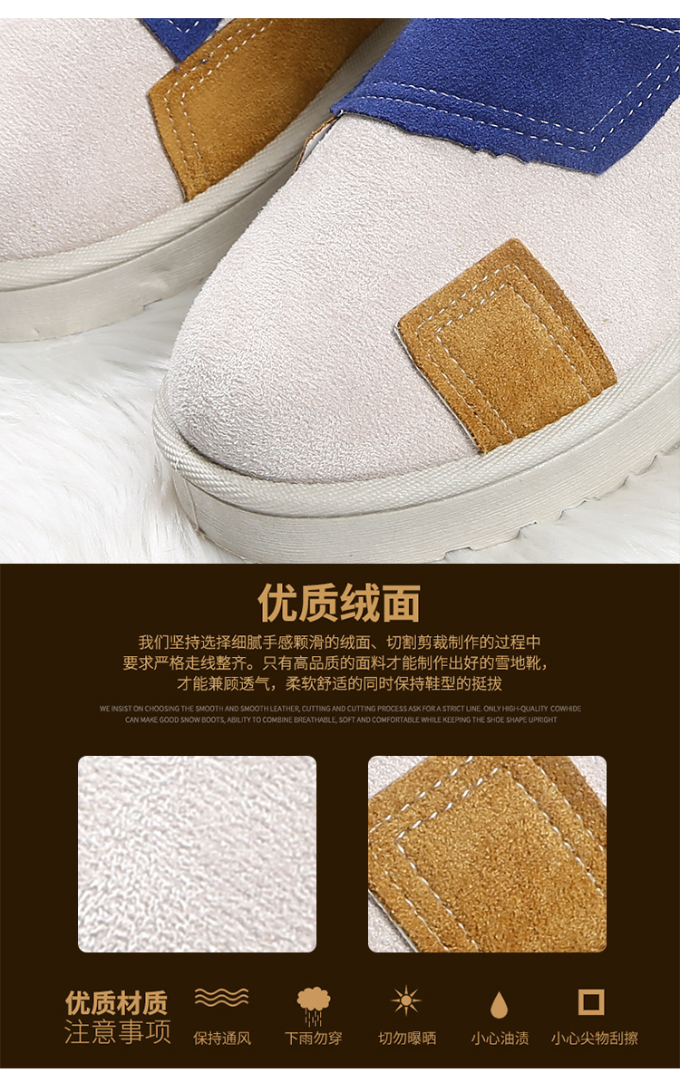 简约雪地靴剪裁,彰显大牌品质,内里加绒设计,三层锁温,保暖性强,防滑耐磨,雪地行走不用怕!细腻绒布料,顺滑亲肤,拼色设计,洋气百搭,冬季必备的凹造型神器!【赠运费险】
