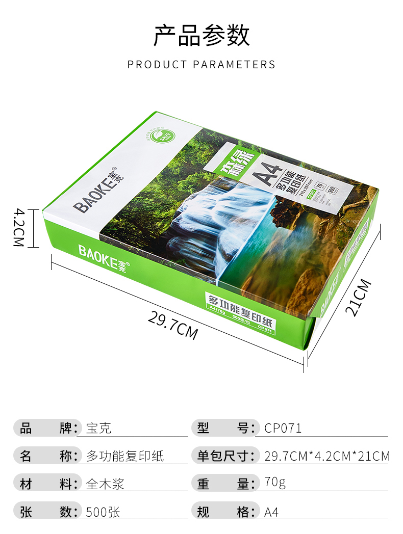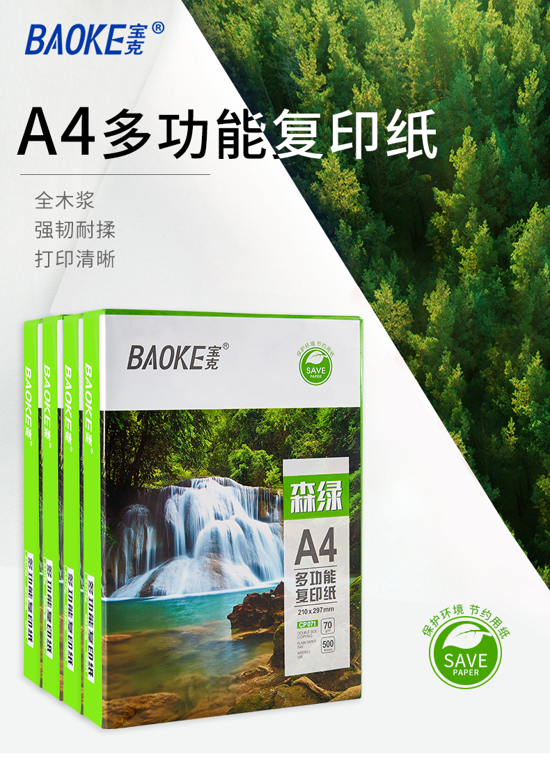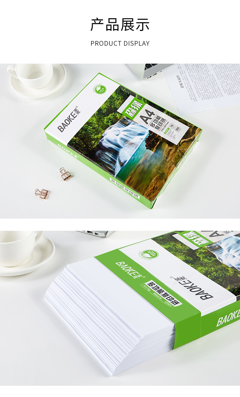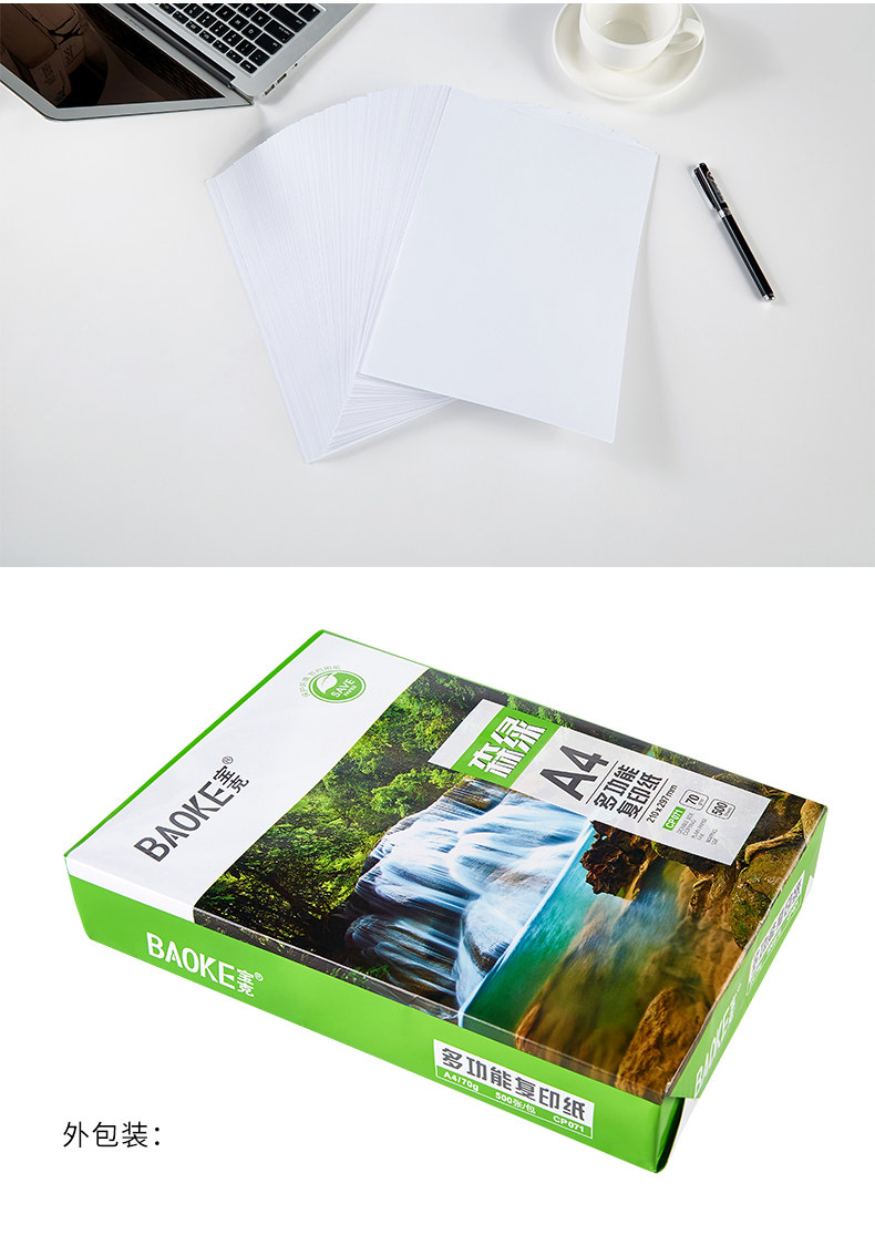 多功能复印纸,显示清晰,触感丝滑,高速复印,全木浆纸,吸水性强,强韧性好,耐折度高,不易掉粉墨,书写流畅,不易渗墨,一纸多应用