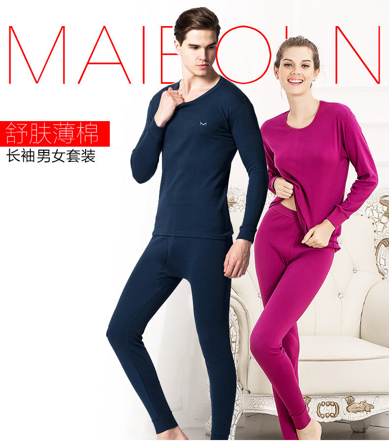 男士保暖内衣加厚加绒情侣套装圆领秋冬中老年防寒修身打底衫女士