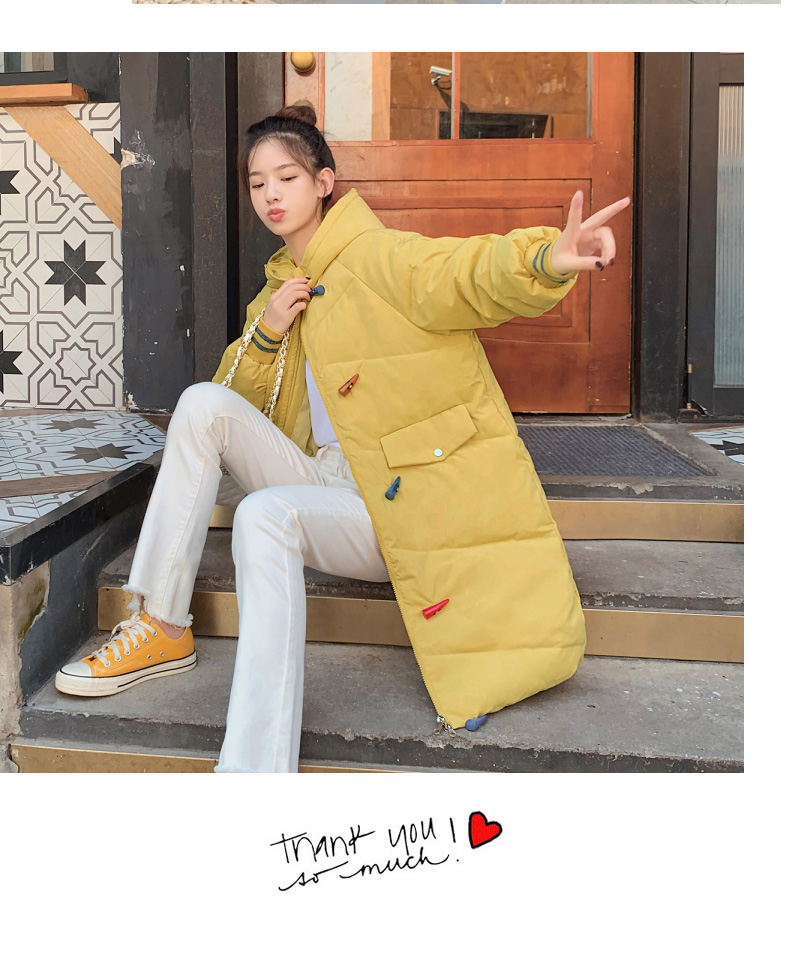 羽绒棉服2019新款女韩版中长款连帽宽松牛角彩扣学生棉衣加厚外套