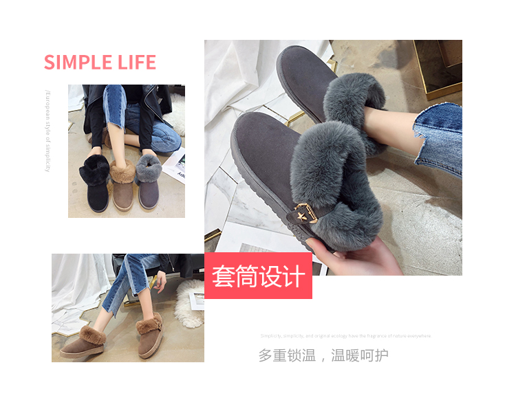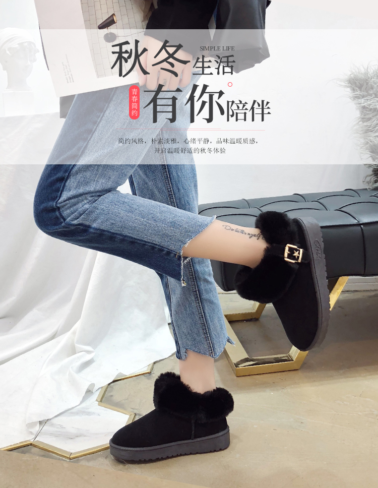 加绒厚底雪地靴女2019新款冬季毛毛靴子面包棉鞋平底短靴网红女鞋