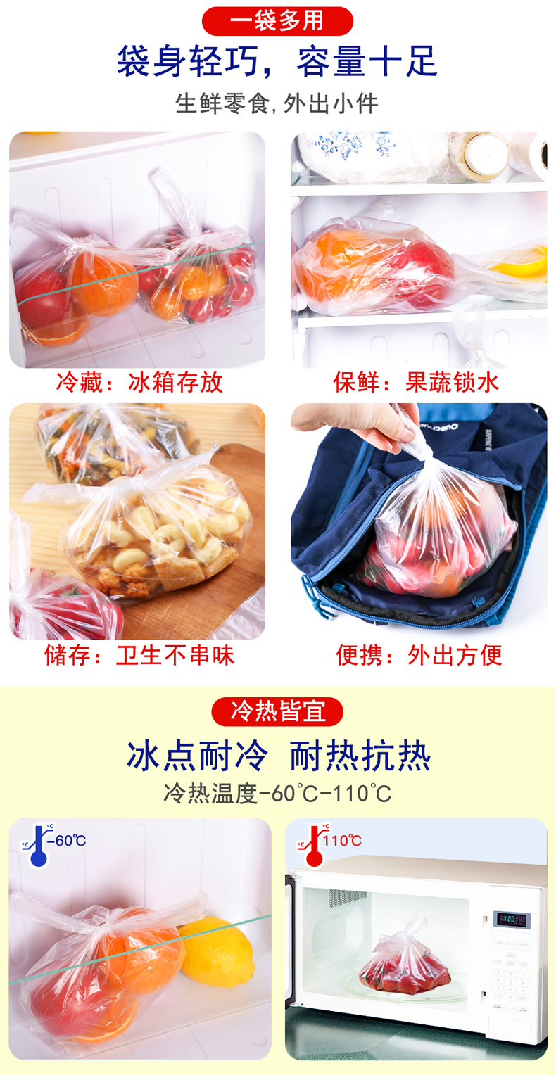 家来纳保鲜食品密封袋加厚透明自封口袋拉链式分装包塑料袋密实袋