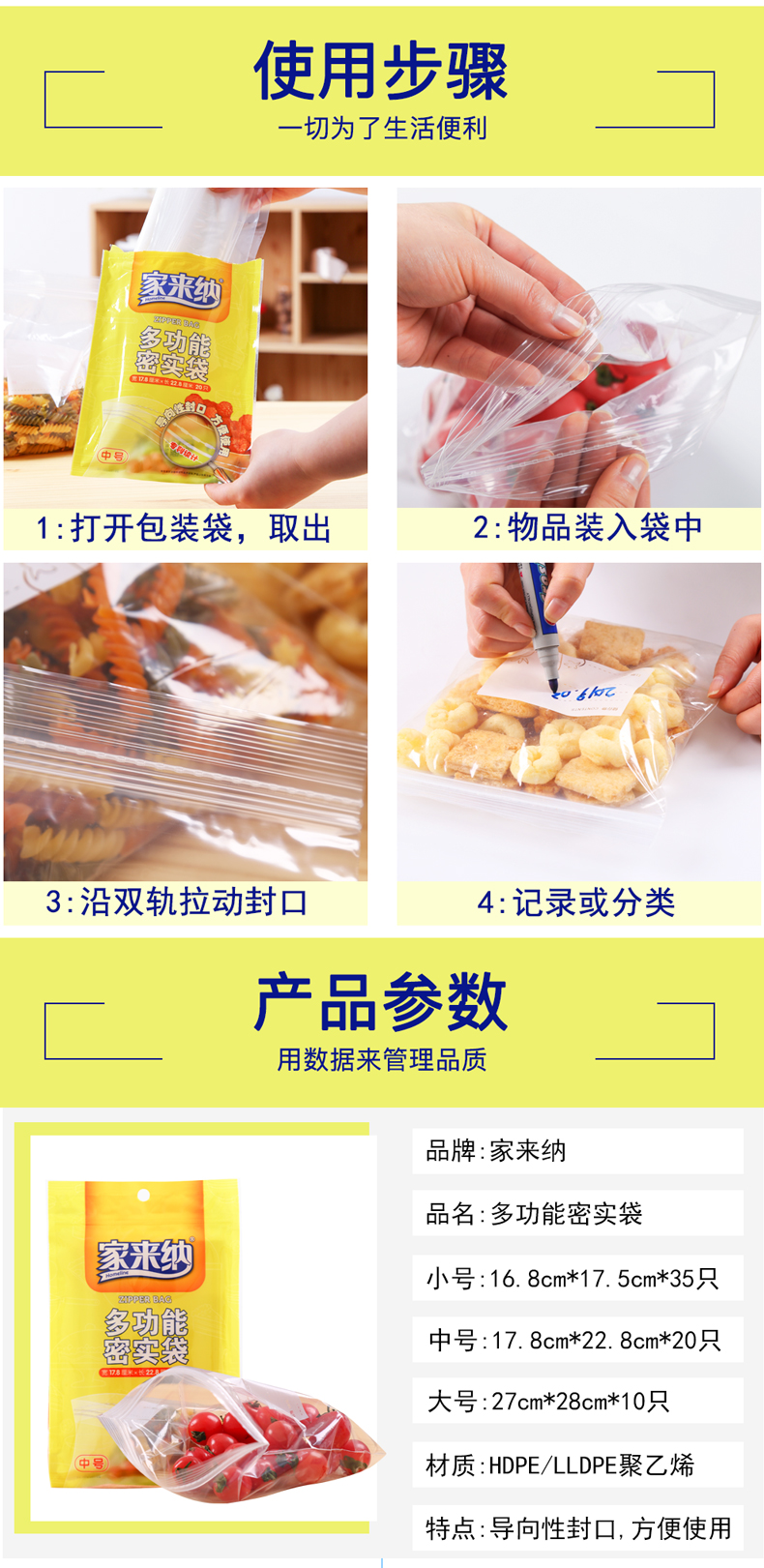 家来纳保鲜袋食品家用一次性超市加厚蔬菜水果大号经济背心式平口