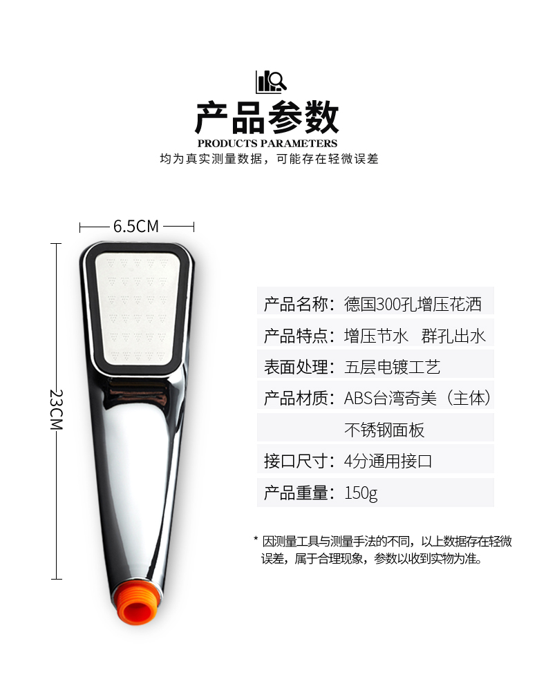 德国 300孔增压淋浴花洒喷头淋雨套装家用单头手持淋浴喷头莲蓬头