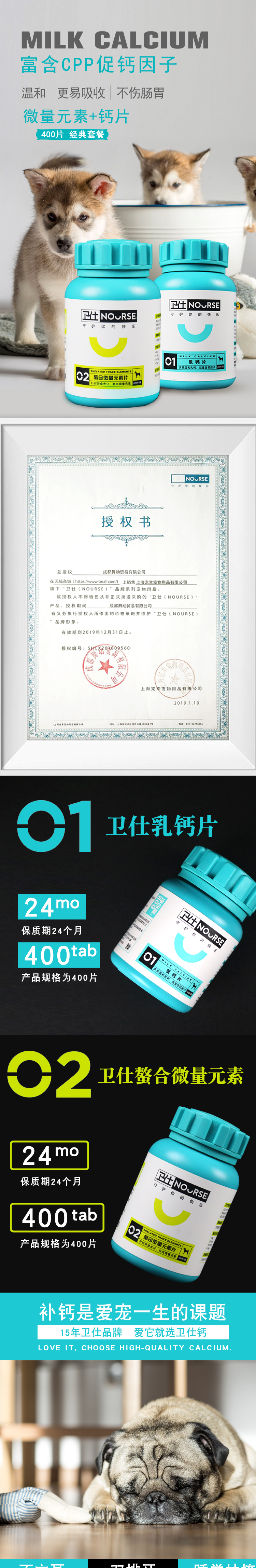 【正品保证】天猫授权店畅销,不吃包退!超值套装400片*2瓶,天然乳钙片,易吸收,温和配方,优质奶源,微量元素,科学配比,让宠物活力充沛,请主动为狗狗补钙【赠送运费险】