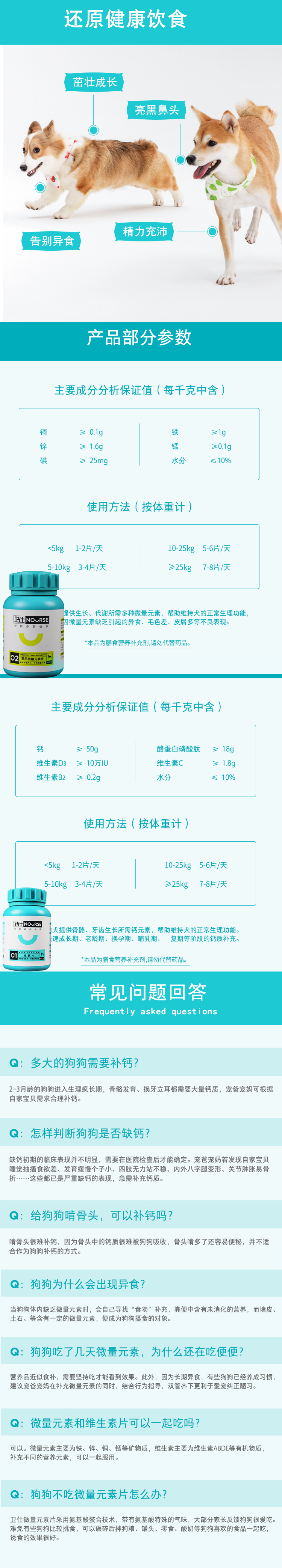 卫仕乳钙片+微量元素套装400片 狗狗钙片健骨补钙成犬幼犬钙粉2瓶
