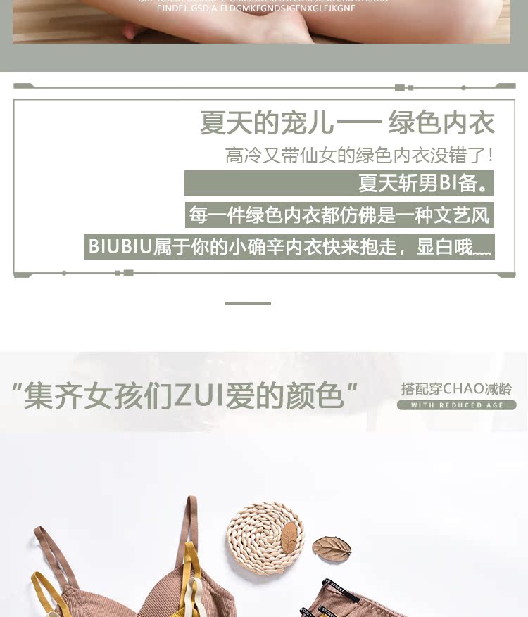 【直营店爆款】网红爆款!超好看有轻盈的清新文胸套装!超薄舒适透气法式三角杯,夏季穿合适吸汗不会闷热。无钢圈不紧勒,聚拢效果较好,穿上超显瘦,凸出性感身材曲线。颜色减龄穿起来很洋气