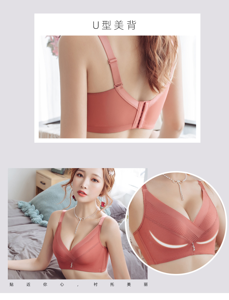 舒适聚拢调整型无钢圈简约文胸纯色条纹性感收副乳大罩杯胸罩女士