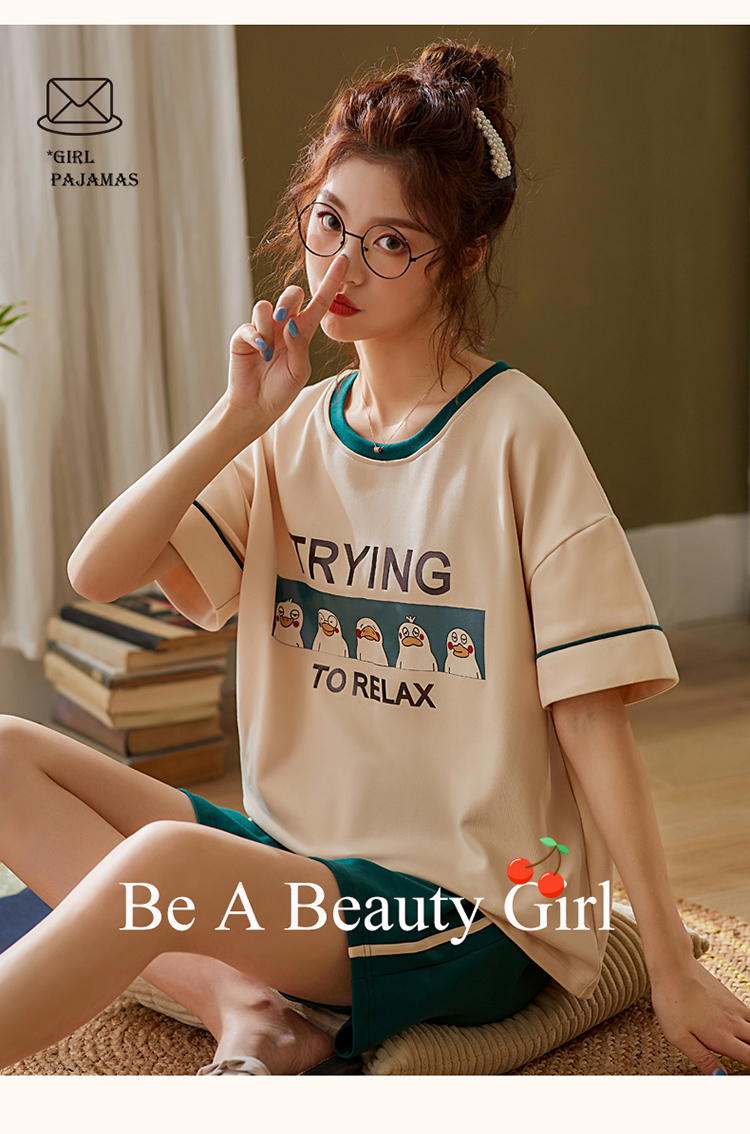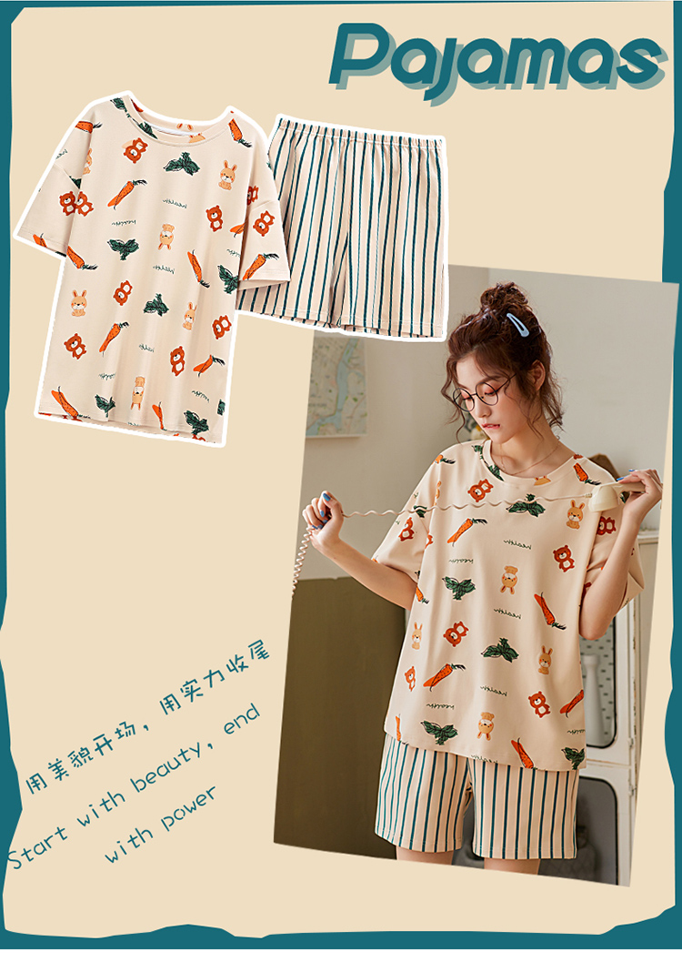 睡衣女春秋纯棉韩版可爱舒适长袖长裤休闲大码学生少女家居服套装