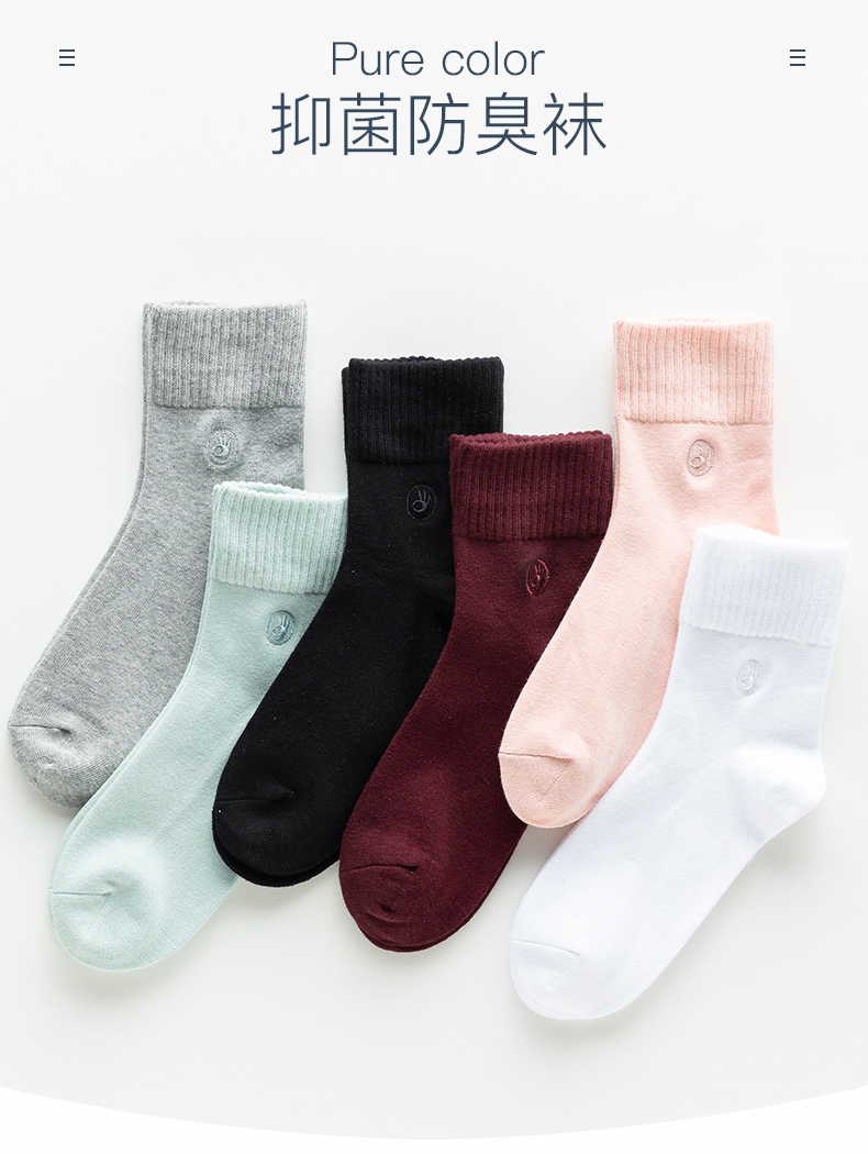 棉质袜子女中筒袜秋冬季女士防臭抑菌棉袜春秋款日系纯色中长袜潮