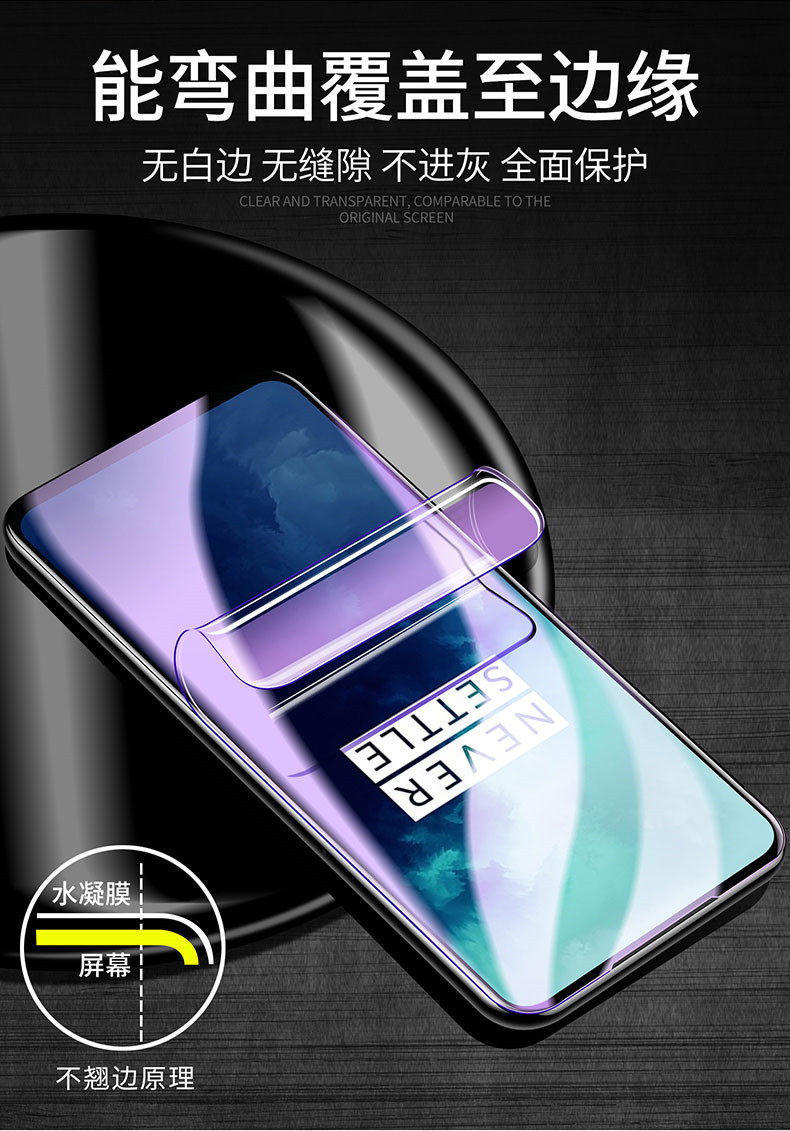 一加7T全系水凝膜钢化膜,多款可选!颠覆传统无白边,超薄软膜,祼机手感!曲屏和2.5D屏幕,能全屏贴合无白边、不翘边!高清防摔防爆,触感灵敏,买就送贴膜神器~